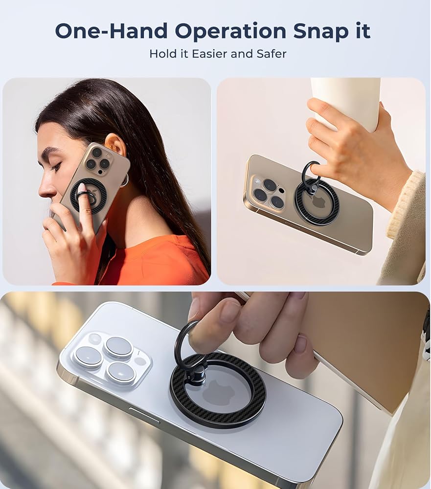 【مثالي لهاتف iPhone MagSafe】- يمكن لمقبض الهاتف MagSafe هذا تركيبه على iPhone 16 16 Pro 15، 15 Plus، 15 Pro، 15 Pro Max، وجميع موديلات iPhone 14 و13 و12، وحافظات magsafe بدون أي ملحقات. سيصبح المغناطيس أقوى في حالة استخدام حلقة معدنية (في الصندوق). يمكن لحامل magsafe هذا التثبيت مباشرة على سلسلة iPhone أو حافظات MagSafe المغناطيسية. سيكون المغناطيس أقوى في حالة استخدام حلقة معدنية.