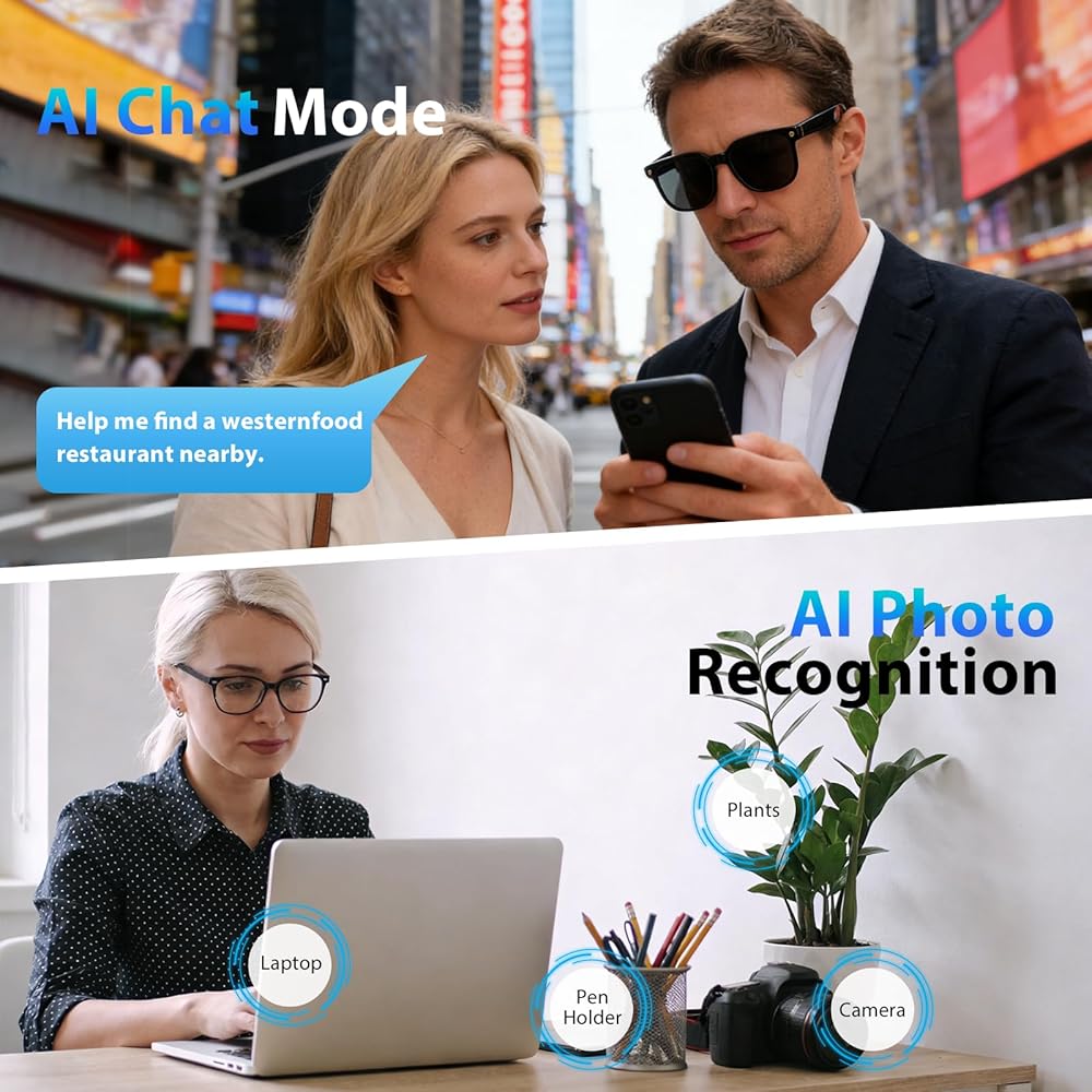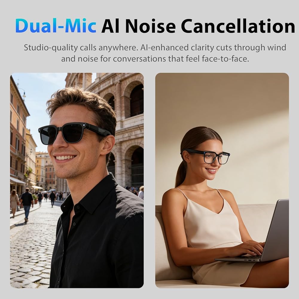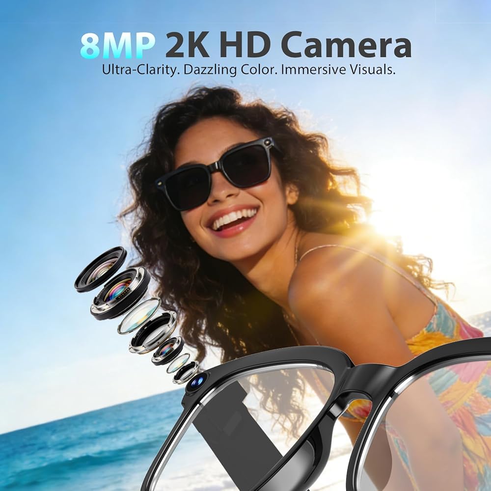 • تصوير عالي الوضوح وتسجيل ثابت، التقاط لحظات الحياة الرائعة: كنظارات كاميرا متعددة الاستخدامات، فهي تتميز بكاميرا عالية الدقة بدقة 8 ميجابكسل، مما يتيح لك التقاط المناظر الطبيعية الخلابة أثناء السفر أو صور المجموعة الدافئة في الحفلات بتفاصيل مذهلة. مزودة بتقنية تثبيت الفيديو بدقة 1200 بكسل، تضمن هذه النظارات الذكية المزودة بكاميرا لقطات سلسة وثابتة حتى أثناء ركوب الدراجات أو الجري أو الرياضات الأخرى، مما يحافظ على الذكريات الديناميكية دون عناء.