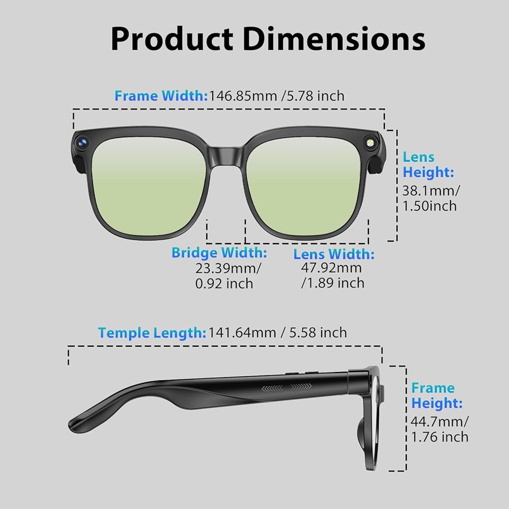 • اتصال فعال ومكالمات واضحة، تبسيط الاتصالات اليومية: مع الاتصال عالي السرعة، تتيح لك هذه النظارات الذكية للرجال والنساء نقل الصور ومقاطع الفيديو على الفور إلى هاتفك لمشاركتها أثناء التنقل.