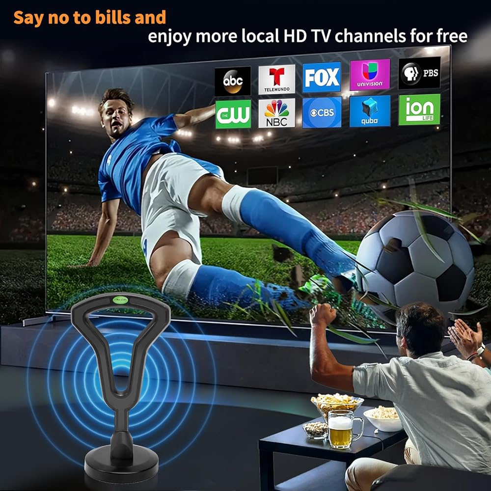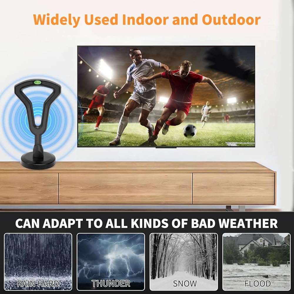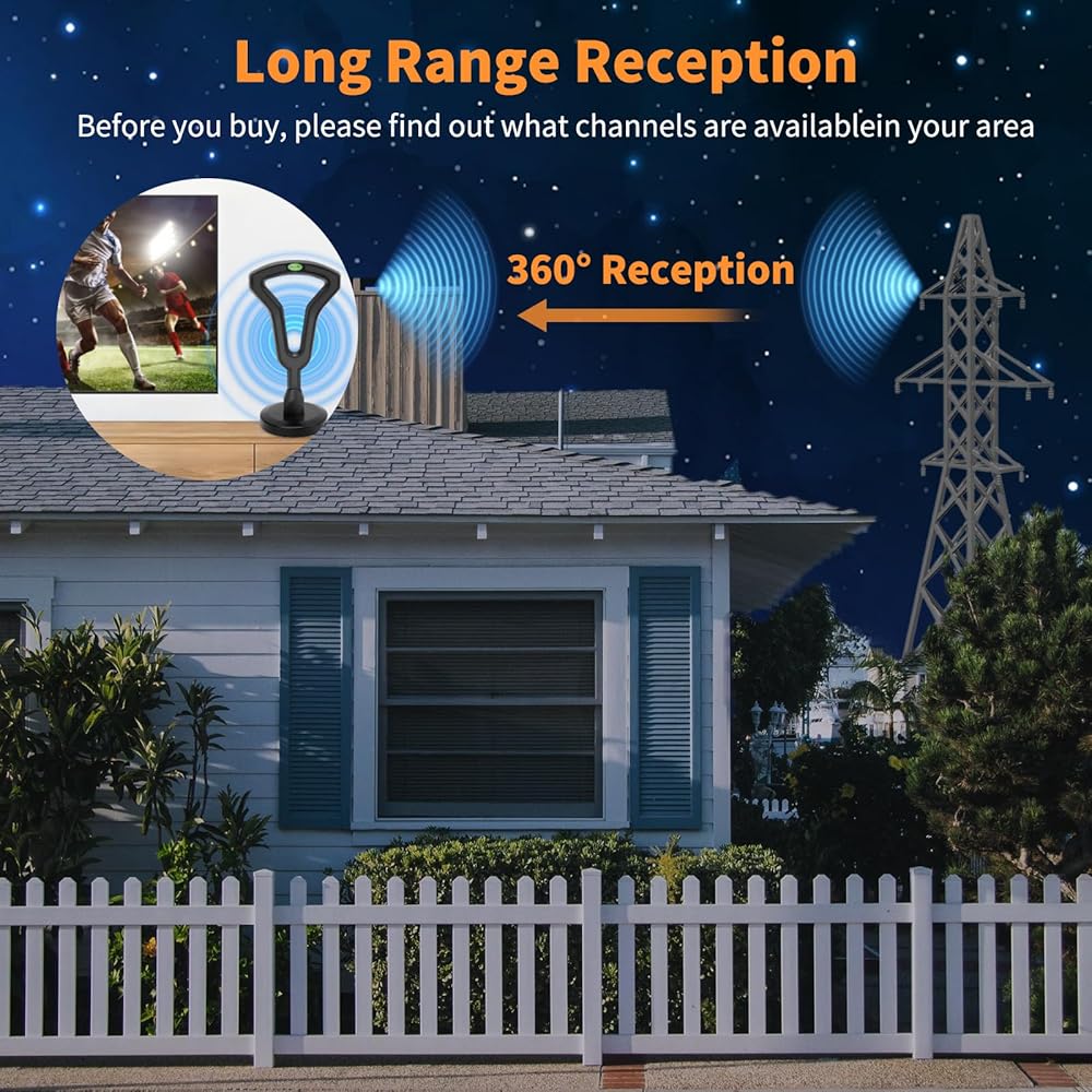 استقبال إشارة واسع النطاق: يحتوي هوائي التلفزيون عالي الدقة الداخلي الذي تمت ترقيته لعام 2025 على شريحة IC ذكية مدمجة تعمل على تحسين استقبال الإشارة وتغطي نطاقًا يصل إلى 130+ ميلًا. قد يختلف الاستقبال الفعلي حسب المسافة التي تفصلك عن برج البث أو هيكل المبنى أو الظروف الجوية. للحصول على أفضل تجربة مشاهدة، يرجى التثبيت والضبط وفقًا للتعليمات الواردة في الدليل المرفق.