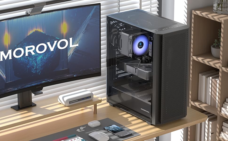 تكوين تبريد بحد أقصى 8 مراوح - تدعم علبة atx التثبيت متعدد المراوح، ويمكن للمستخدمين اختيار المروحة المناسبة للتثبيت لإضافة قنوات هواء تبريد إلى علبة atx mid tower. تزود MOROVOL علبة الكمبيوتر البرجية بـ 4 مراوح تبريد بسيطة، العدد ليس كثيرًا ولكن الدقة، ولكن أيضًا لتبريد علبة الكمبيوتر الشخصي للمساهمة في الجهد.