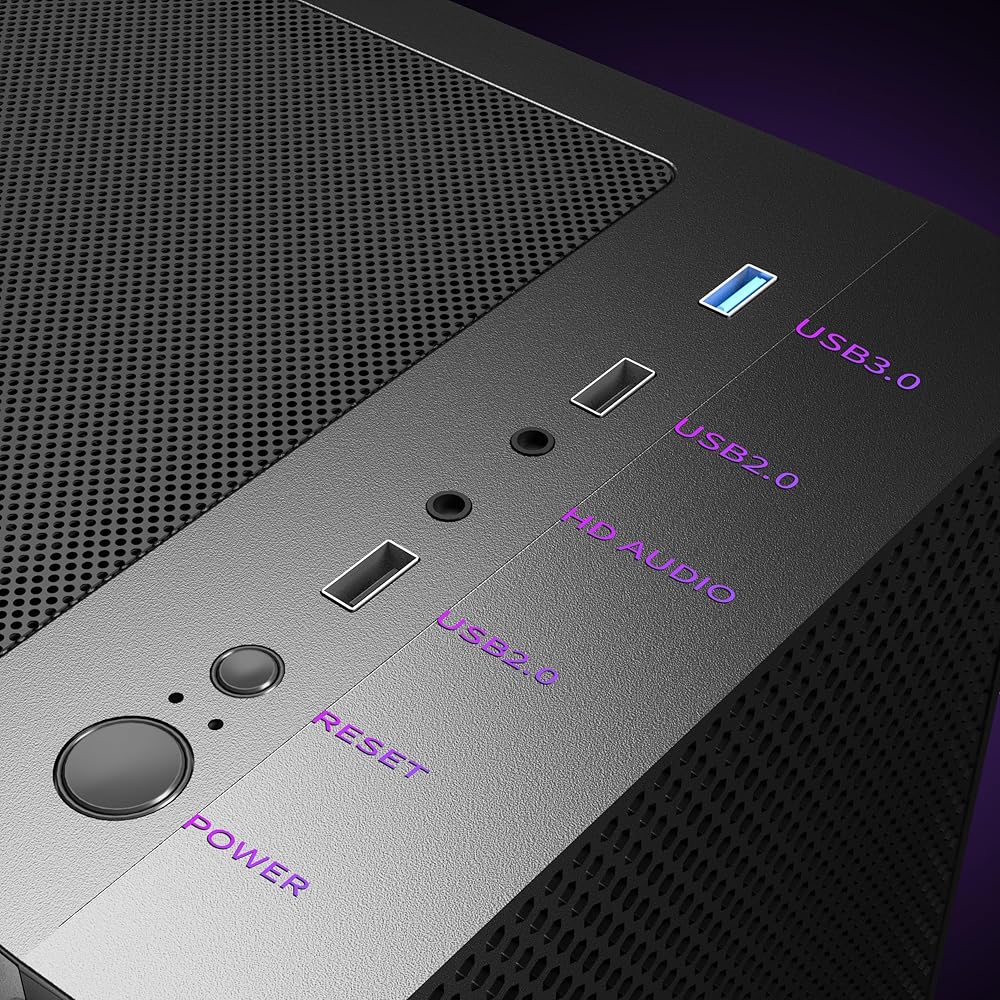 لوحة IO ذكية ببساطة - تأتي علبة الكمبيوتر المزودة بمراوح مزودة بمنفذ USB 3.0 ومنفذي USB 2.0 لسهولة التوسيع وسرعات نقل أسرع، مما يوفر اتصالاً سلسًا وسهولة الوصول إلى جميع أجهزتك الطرفية المهمة.