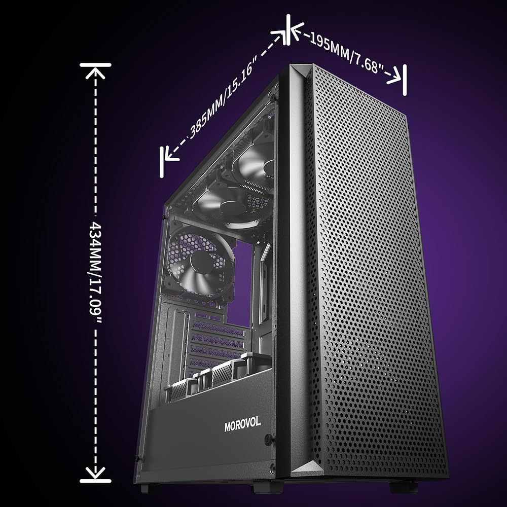 نسبة أداء إلى سعر لا مثيل لها - توفر MOROVOL تصميمًا جديدًا أنيقًا وجميلًا للوحة الكمبيوتر الشبكية على شكل قرص العسل atx P5 مع تدفق هواء جيد وتهوية جيدة، مثبتة مسبقًا بـ 4 مراوح تبريد، ومساحة تثبيت كافية لتحقيق كفاءة تبريد ممتازة لأجهزة الكمبيوتر الشخصية، والألعاب المنزلية في نفس الوقت.