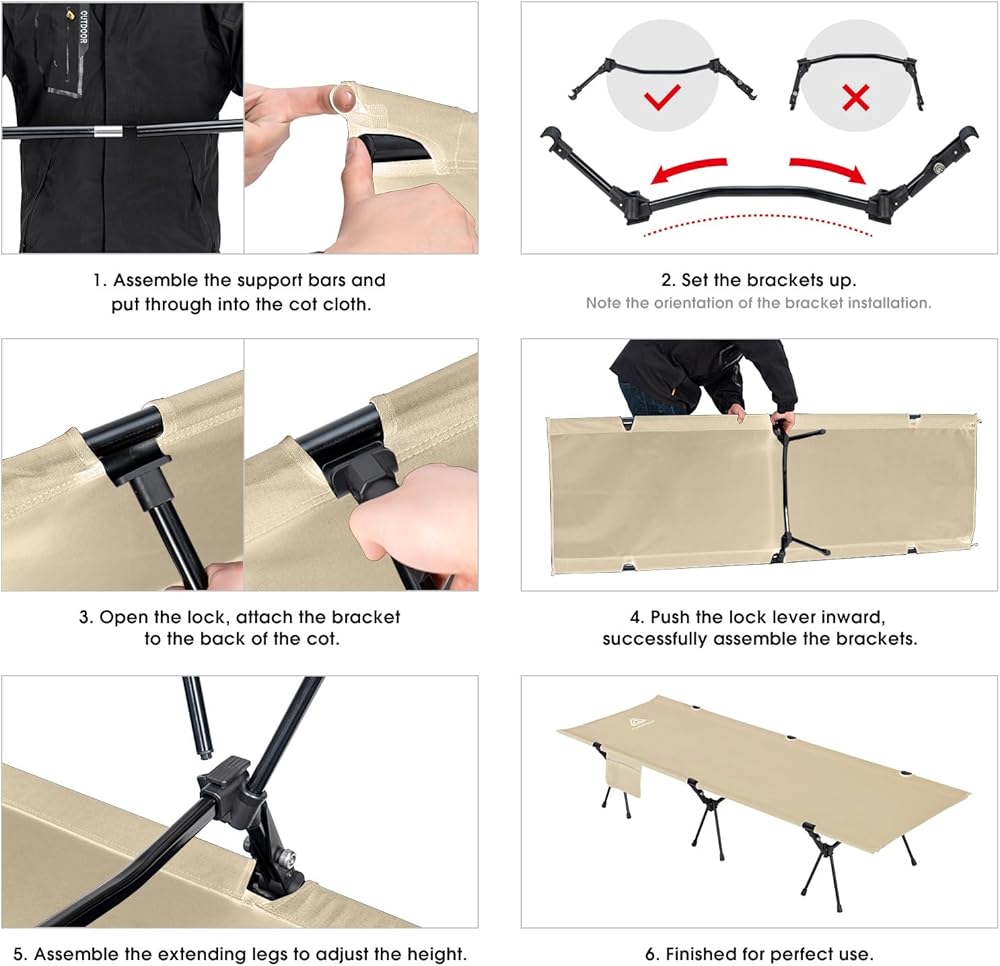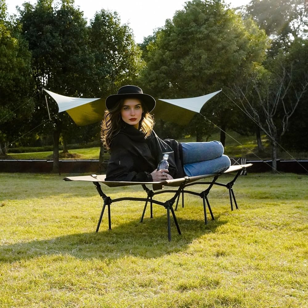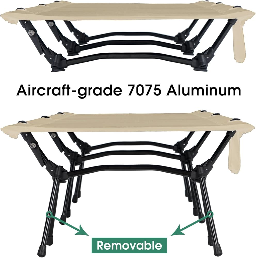 • 🏕️ 【سرير ألومنيوم خفيف الوزن ولكن عالي القوة للتخييم】 مصنوع من قضبان وأقواس ألومنيوم من فئة الطائرات 7075 مما يجعله يزن 6.6 رطل/3 كجم فقط. إنه خفيف جدًا حتى بالنسبة للفتيات الصغيرات. لكن الإطار يدعم بقوة سرير المخيم من الانقلاب أثناء الجلوس والنوم، وهو قوي ومستقر بما يكفي لدعم ما يصل إلى 330 رطلاً (150 كجم)، وهو أيضًا سرير تخييم متين للأشخاص ذوي الوزن الثقيل.