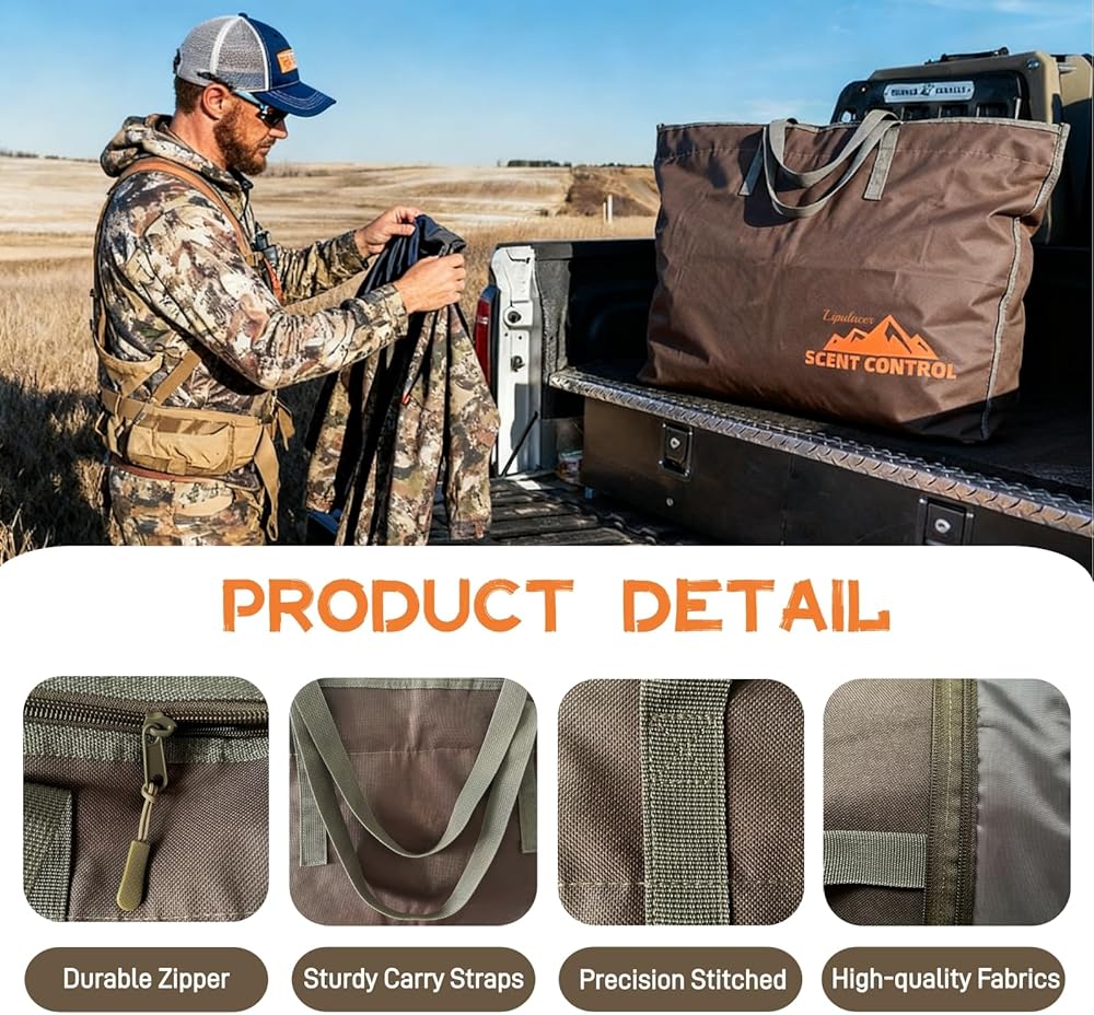 تحكم فعال في الرائحة: حقيبة التحكم في رائحة ليبولسر تحبس أي نوع من الروائح وتحافظ على الروائح بعيدًا عن ملابس الصيد أو معدات الصيد، وتمنع اكتشاف حيوانات اللعبة التي تشعر برائحتك لزيادة نجاح الصيد في هذا المجال. يمتزج نمط التمويه الواقعي للشجرة بسلاسة مع بيئات الصيد الطبيعية من أجل إخفاء مثالي