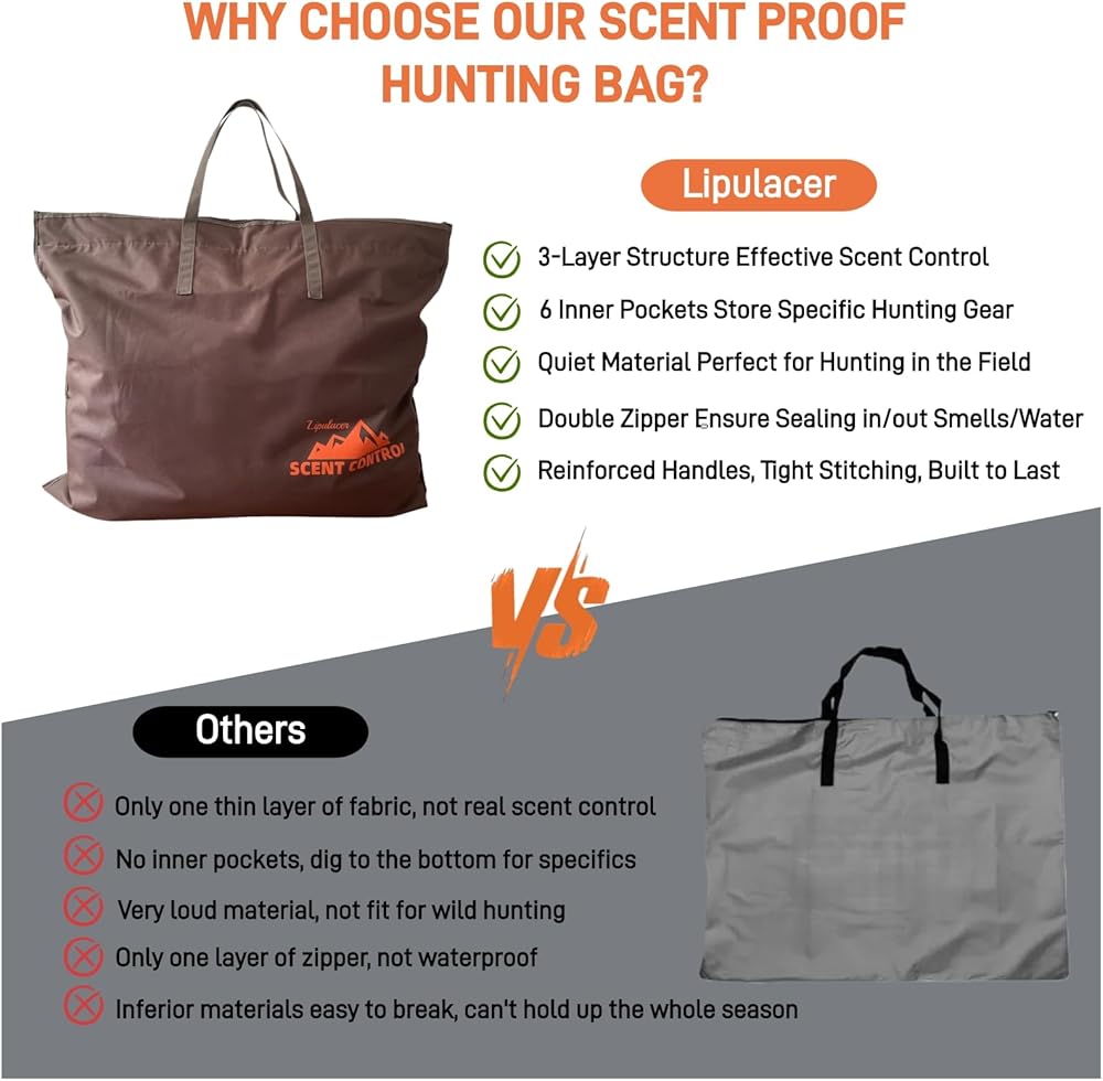 استخدامات متعددة: حقيبة Lipulacer الخالية من الروائح مثالية للصيد وتخزين الطعام بشكل آمن أثناء المناطق الموبوءة بالدب. يمكن استخدامها أيضًا لحمل الأشياء المعطرة أثناء التخييم أو السفر، وتخزين الملابس اليومية، والحفاظ على ملابسك طازجة وخالية من الروائح. لا غنى عنه لمخيم الصيد الخاص بك هذا الموسم