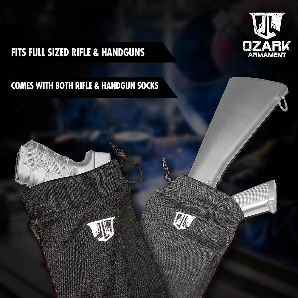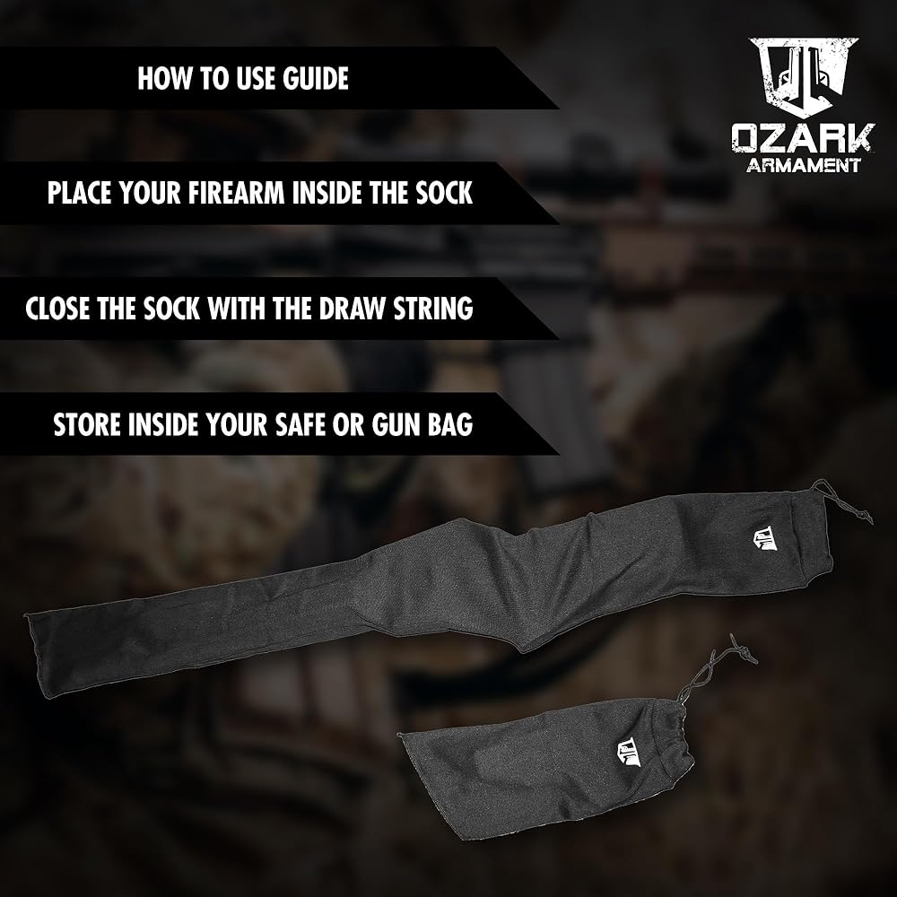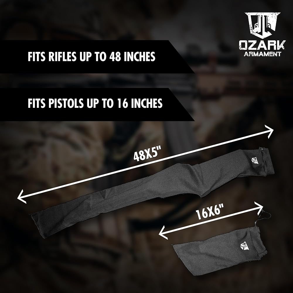 حماية متعددة الاستخدامات: مثالية لأي مجموعة من عشاق الأسلحة، مجموعة جوارب البندقية متعددة الاستخدامات لدينا تناسب كلاً من البنادق والبنادق والمسدسات. مقاس 48 بوصة لجورب البندقية و16 بوصة لجورب المسدس ومجهز برباط آمن.