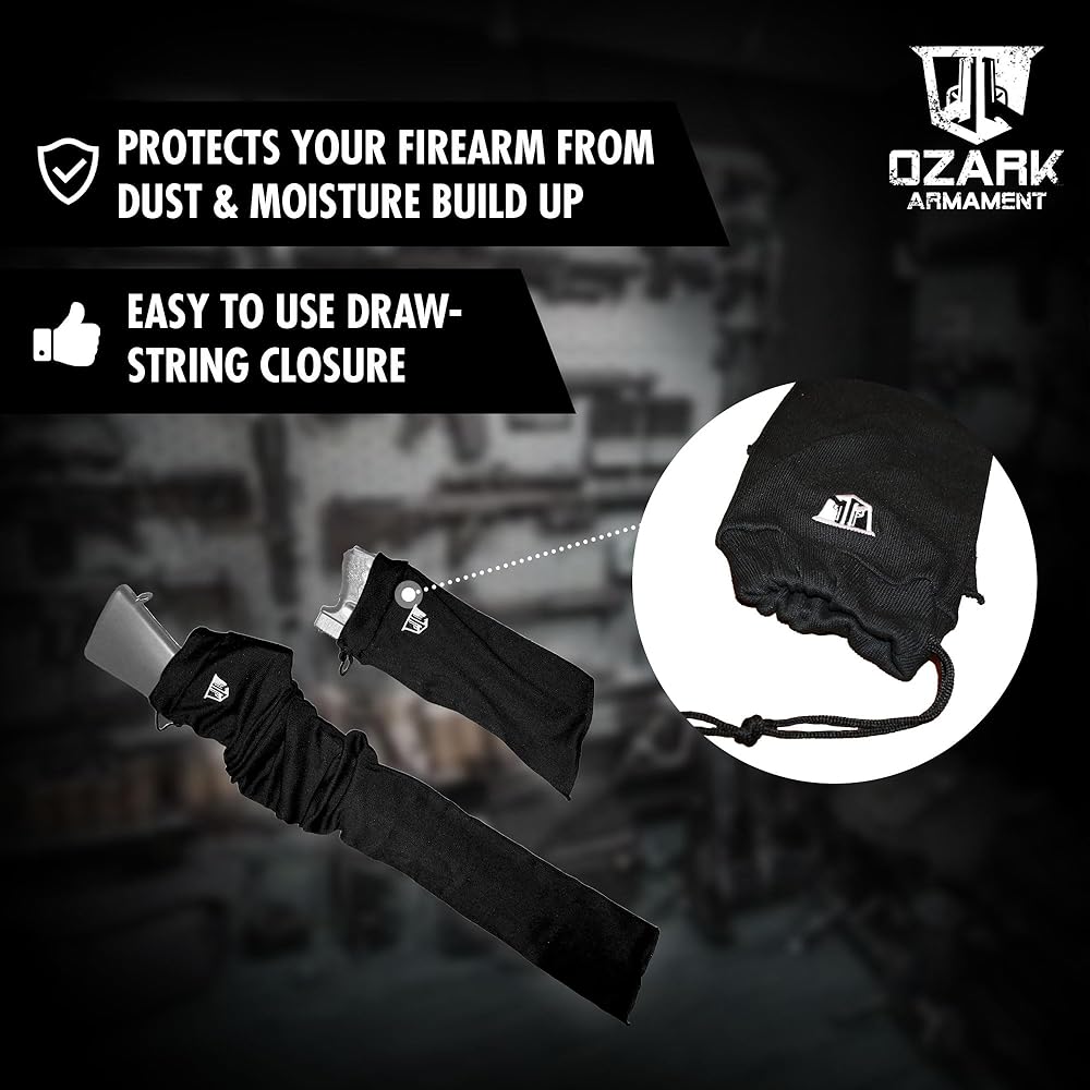 هيكل متين: مصنوع من نسيج محبوك قوي، هذا الجورب المسدس ضروري للحفاظ على أسلحتك النارية. فهو يمنع بشكل فعال الصدأ والنقر ويقلل من الخدوش والضربات، وبالتالي يطيل عمر خدمة بندقيتك أو بندقيتك أو مسدسك.