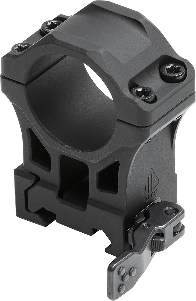 UTG ACCU-SYNC QR 1" High Profile Picatinny Scope Rings, Weight Reduction Lightening Cuts, 6061-T6 Aluminum, Radiused Edges and Corners, Quick Release Mount, QR, Featuring Tool-free Adjustment, QD Locking Lever, and Squared Recoil Stops, 20mm/32.7mm Saddle/Center Height, Matte Black Anodized