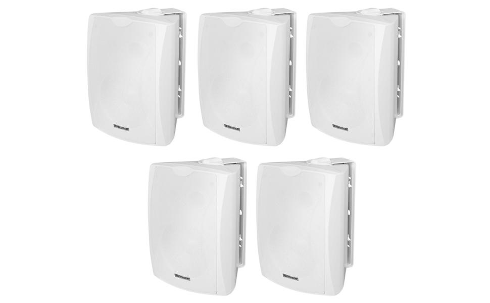 • تتضمن الحزمة: (5) Rockville WET-6W 70V 6.5" IPX55 مكبرات صوت جدارية تجارية داخلية/خارجية - بيضاء. تم تصميم كل مكبر صوت لتشغيل 70 فولت أو 8 أوم، ويتضمن دعامات حائط دوارة مع مقابض سريعة التحرير، ويتميز بمواد مقاومة للطقس مناسبة لكل من التطبيقات التجارية والسكنية.