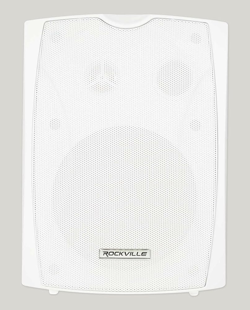 Rockville WET-6W White 70V 6.5 بوصة سماعات حائط داخلية/خارجية مصنفة IPX55، دعامة تثبيت دوارة، مقاومة للطقس للمطاعم والباحات والمساحات التجارية، 5 قطع
