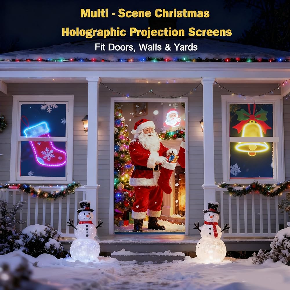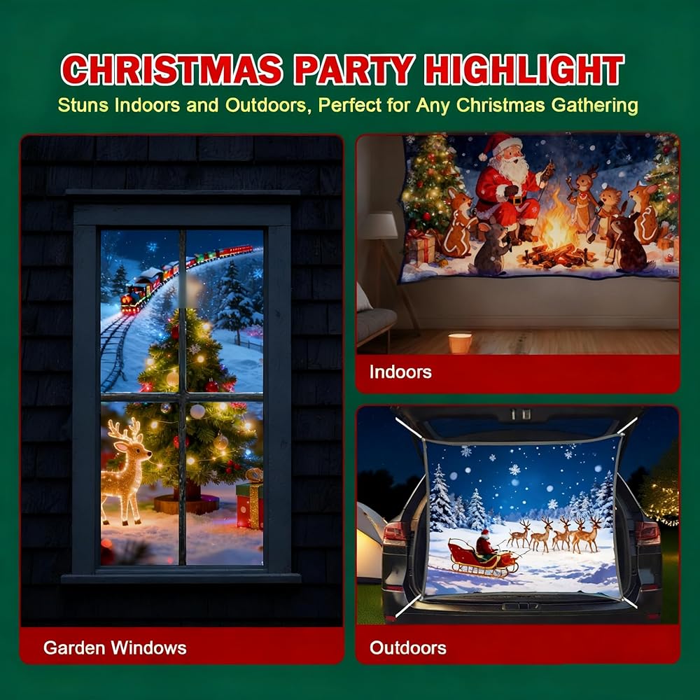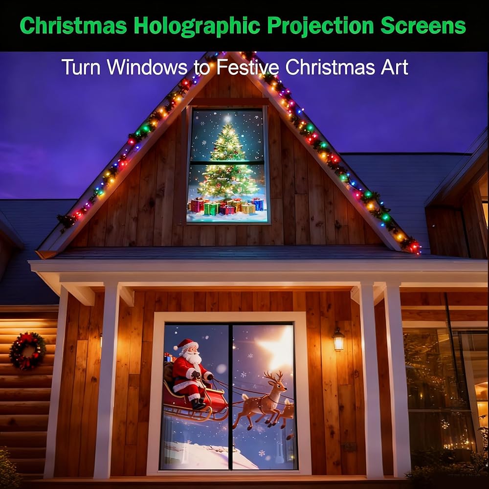 【نافذة مزدوجة الجوانب وإسقاط في الفناء】 قم بتعليقها في أي مكان! تعمل هذه الشاشة الشفافة بشكل مثالي في النوافذ للأوهام التي تواجه الشارع أو في الفناء الخاص بك. يتيح تصميمه ذو الوجهين رؤية نابضة بالحياة على الوجهين، مما يجعله مثاليًا لشاشات عيد الميلاد الداخلية والخارجية.