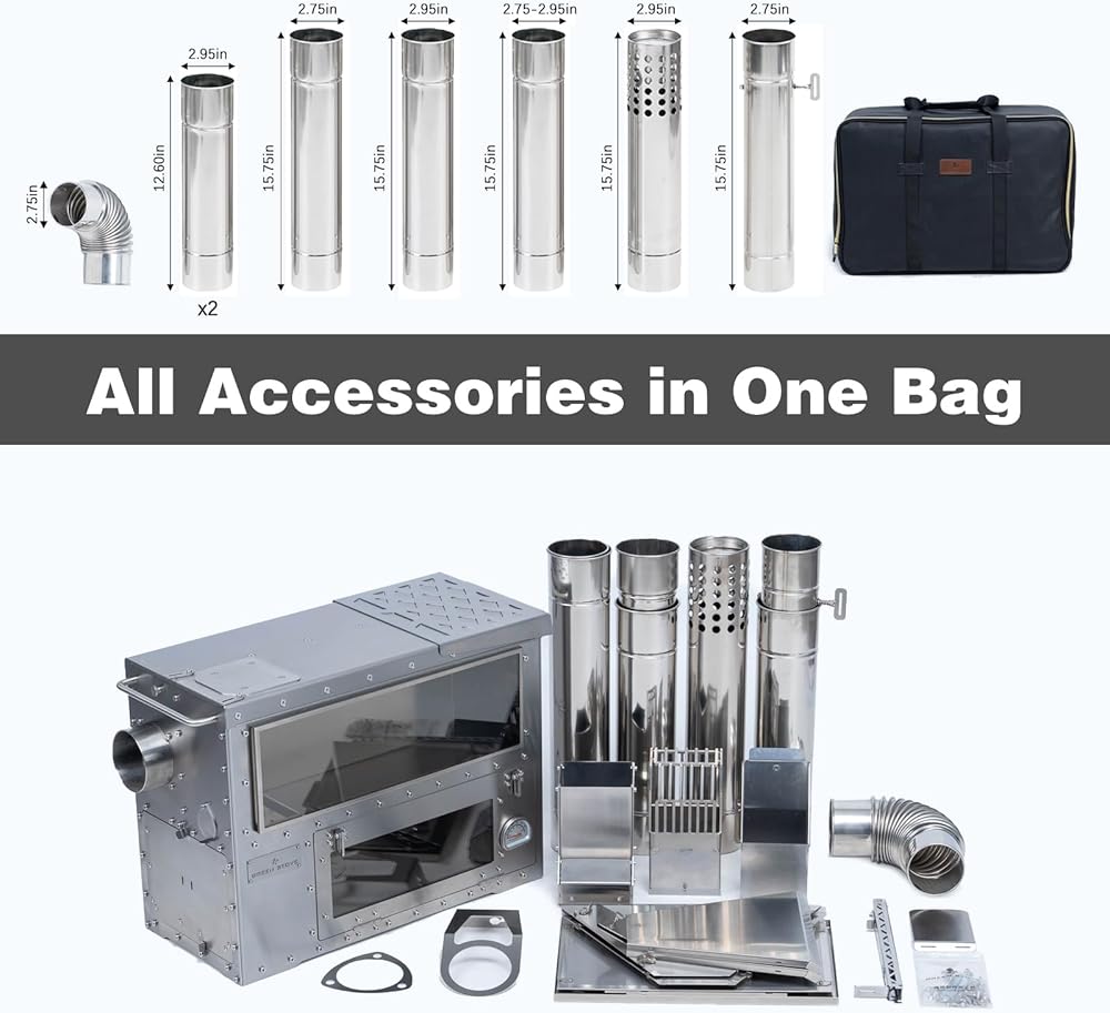سهلة الحمل: يمكن تخزين جميع الملحقات، بما في ذلك أنابيب المدخنة، بشكل مريح داخل الجسم الرئيسي. هذا التصميم المدمج والمحمول يجعل من السهل تعبئته ونقله للتخييم والمشي لمسافات طويلة والمغامرات الخارجية الأخرى.