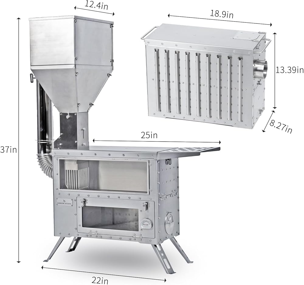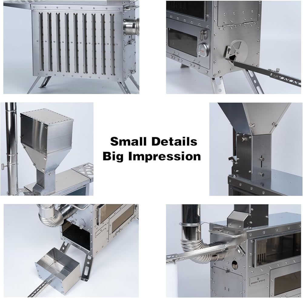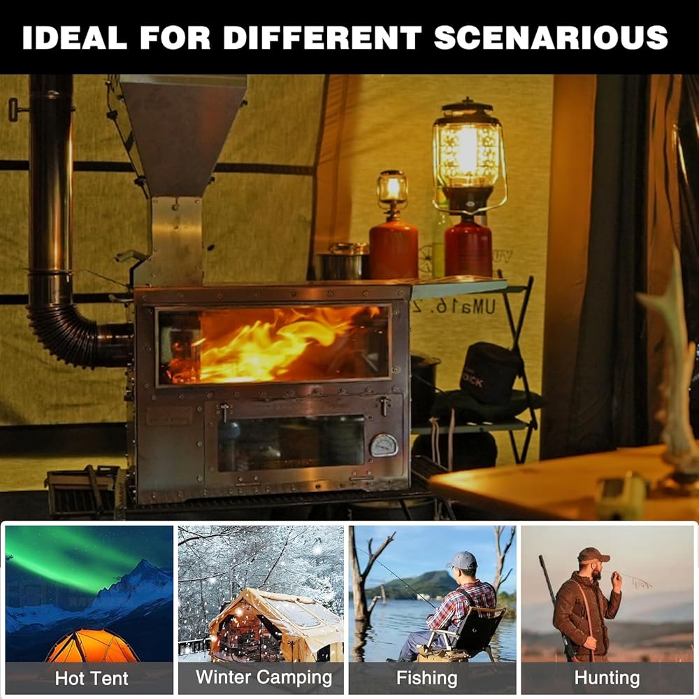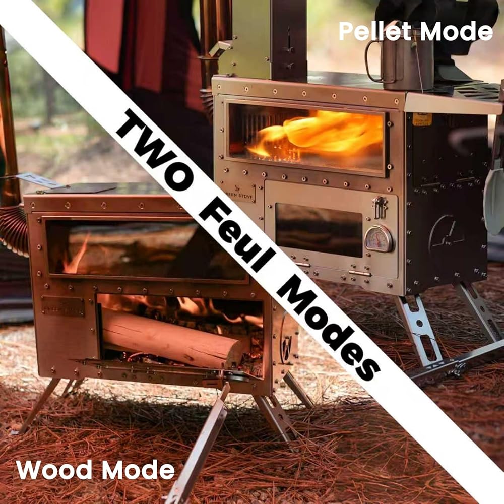موقد تخييم خارجي مع فرن، موقد خيمة متعدد الوقود متوافق مع الخشب أو الكريات، موقد محمول مع أنابيب مدخنة للاستخدام الخارجي فقط (الموديل: GreenStovehori 5 Max)
