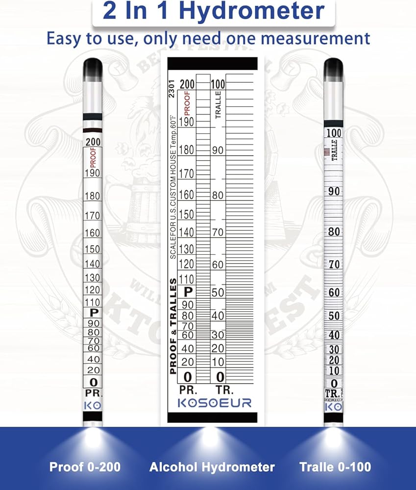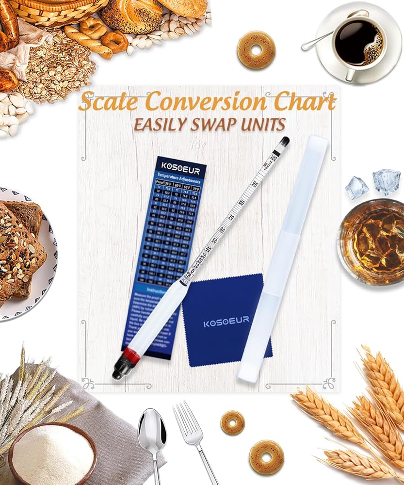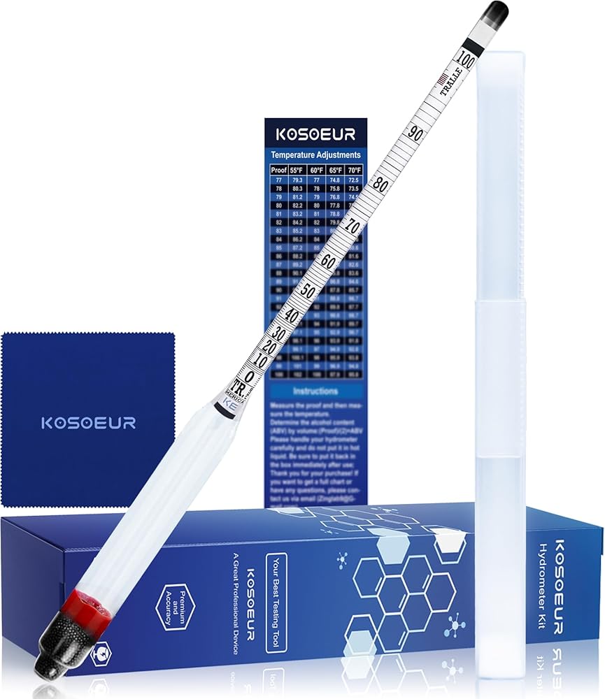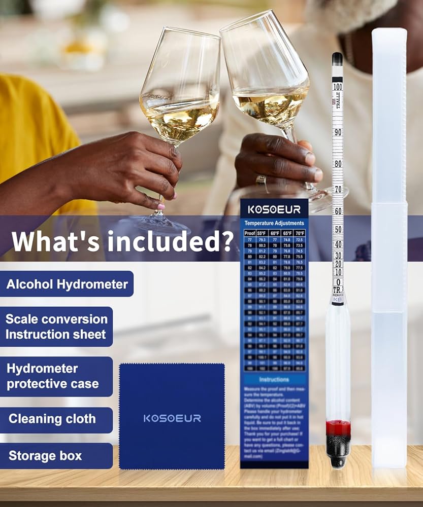 • [ما تحصل عليه]: 1x مقياس كثافة الكحول الدقيق، 1x قطعة قماش تنظيف من الألياف الدقيقة، تعليمات مع ورقة تحويل، تعبئة رائعة وضمان الجودة لمدة تصل إلى 12 شهرًا! (هدية رائعة لمحبي المشروبات الروحية)