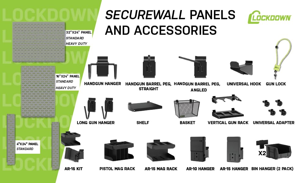 • VERSATILITY: Compatible with Lockdowns unique pattern panels due to proprietary hooks. Can be easily removed or reconfigured. Support hooks allow for variety of firearms to be stored with easy access while remaining secure