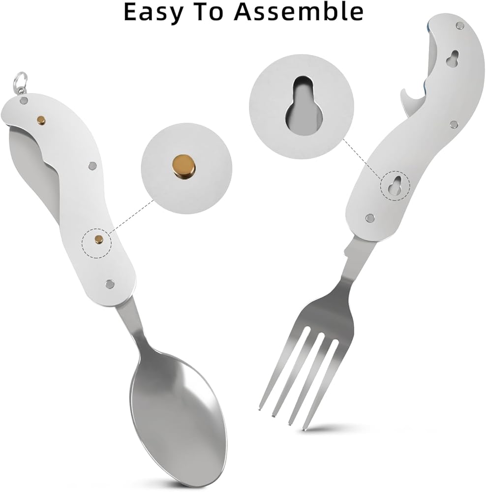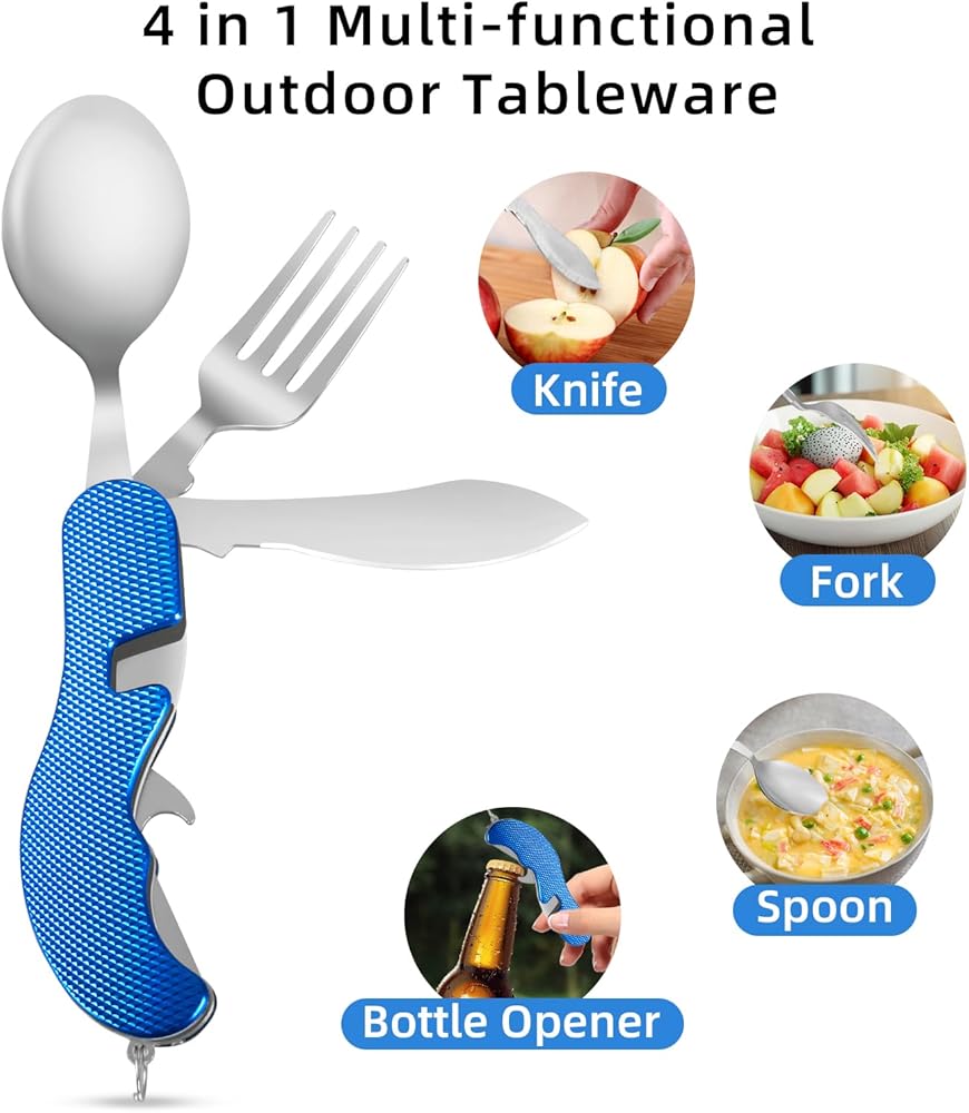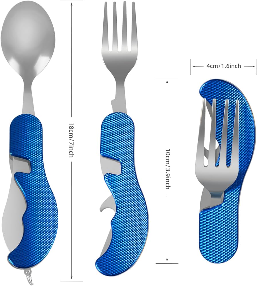• أربع وظائف: ملعقة، شوكة، سكين، فتاحة زجاجات