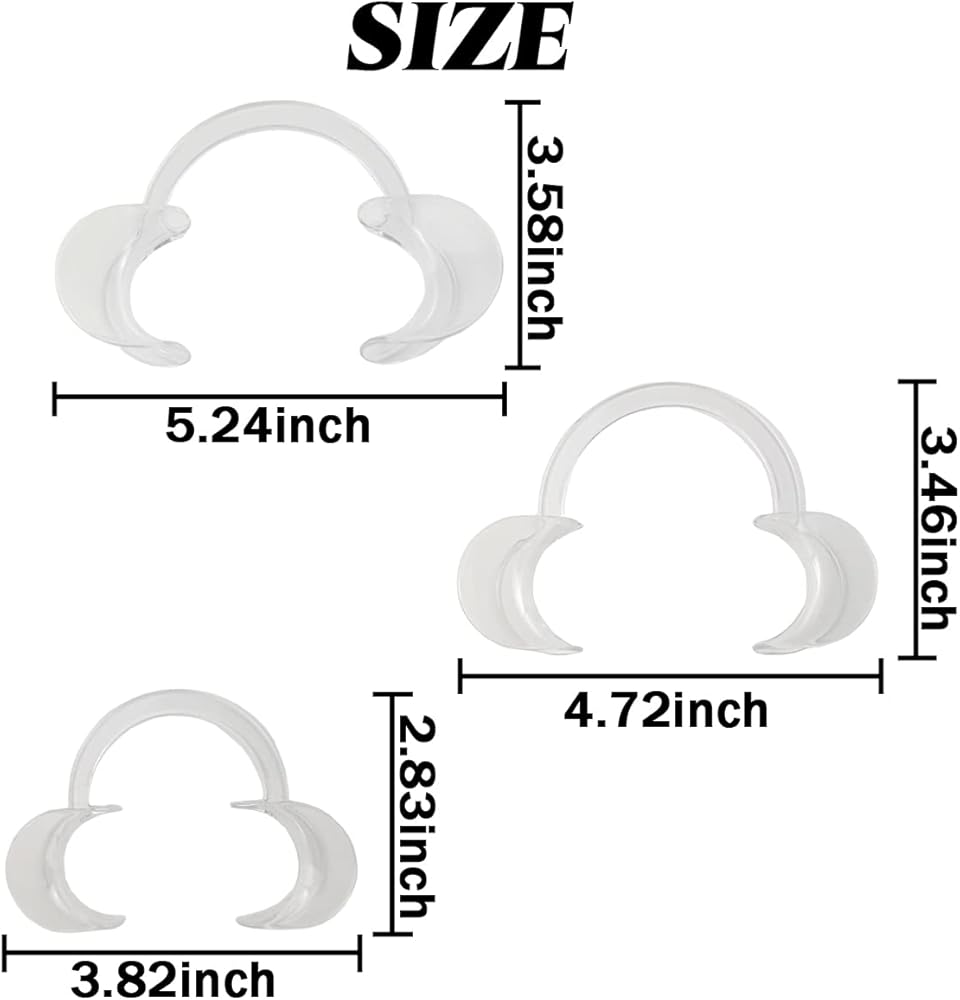 21 قطعة من GXXMEI (7 متوسطة + 7 كبيرة + 7 صغيرة) ضام الخد لتبييض الأسنان على شكل حرف C، فتاحة فم الأسنان قابلة للتعقيم، ضامة خد الشفاه للأسنان للاستعمال مرة واحدة من أجل لعبة تحدي واقي الفم