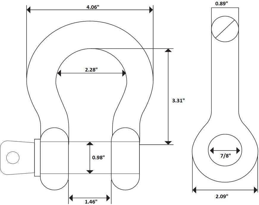 تكبل مقوس ممتاز مقاس 7/8 بوصة من منتجات Alfa Wheel. مصنوعة من فولاذ بقوة شد عالية للغاية بسمك 7/8 بوصة، هذه الأغلال المغطاة بالزنك تقاوم الضرر حتى في أصعب العناصر. يتميز بدبوس لولبي ملولب بقطر 1 بوصة مثالي للتثبيت والإزالة السريعة. على عكس الأغلال الضيقة على شكل حرف D، تم تصميم حلقات "O" الأكبر على هذه الأغلال القوسية لتحمل الأحمال من اتجاهات متعددة دون تطوير تحميل جانبي غير آمن. الحد الأقصى للحمل هو 6-1/2 طن (14,300 رطل). تقبل المساحة الواسعة مقاس 2 بوصة داخل الشكل "O" نقاط اتصال متعددة وأشرطة أو اتصالات أكبر لجميع احتياجات التثبيت والسحب والرفع الخاصة بك. قياسات القيد موضحة في الصور. دبوس ملولب قابل للإزالة بسهولة.