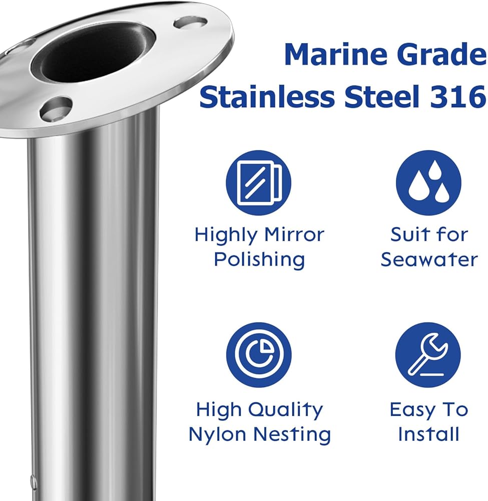 [Sleek Look with Seamless Flush Mounting] Flush mount design with high fit accuracy ensures a clean and sleek look. Highly mirror-polished surfaces make the boat rod holders more sleek