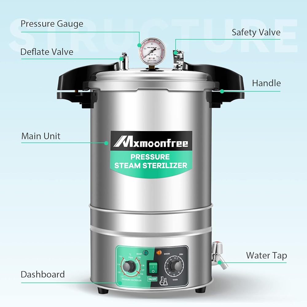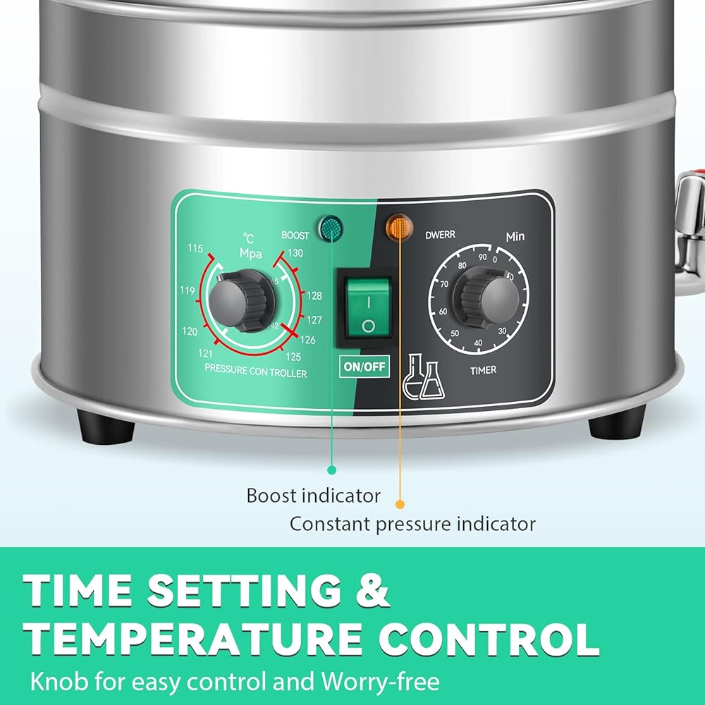 [إعداد الوقت] يوفر جهاز الأوتوكلاف الحراري Mxmoonfree سعة 19 لترًا كل الجودة والموثوقية التي تتوقعها، مع سهولة ضبط درجة الحرارة وإعداد درجة الحرارة.