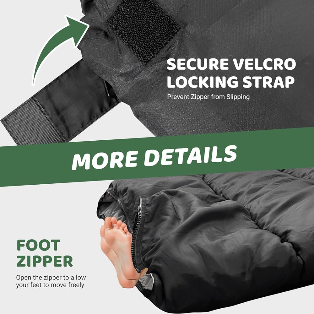 خفيفة الوزن وسهلة الحمل: تزن حقيبة النوم للتخييم هذه 3.96 كجم فقط، وقد تم تصميم حقيبة النوم هذه لسهولة الحمل. صغيرة الحجم وسهلة الطي، ويمكن تخزينها بشكل أنيق في حقيبة الحمل المتوفرة، مما يجعلها الرفيق المثالي لمغامرتك القادمة! يبلغ حجم كيس النوم المضغوط المضغوط 30 بوصة × 39 بوصة فقط، مما يوفر مساحة لتناسب حقيبة الظهر الخاصة بك مع توفير مساحة كبيرة للراحة.