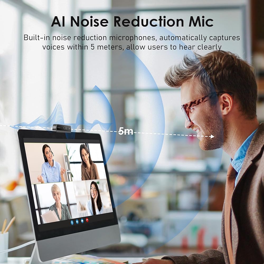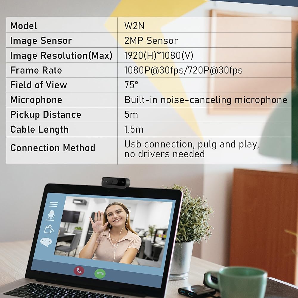 2 ميكروفونات مدمجة لتقليل الضوضاء: تم تجهيز كاميرا الويب W2N بميكروفون متطور لإلغاء الضوضاء يضمن نقل صوتك بوضوح حتى في البيئات الصاخبة. هذه الميزة تجعلها مثالية للندوات عبر الإنترنت والمؤتمرات والبث المباشر ومكالمات الفيديو الاحترافية - يظل صوتك واضحًا ونقيًا بغض النظر عن ضجيج الخلفية أو عوامل التشتيت