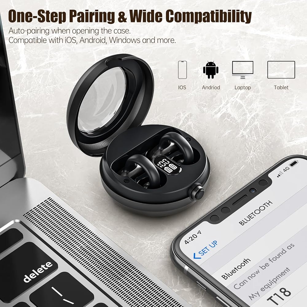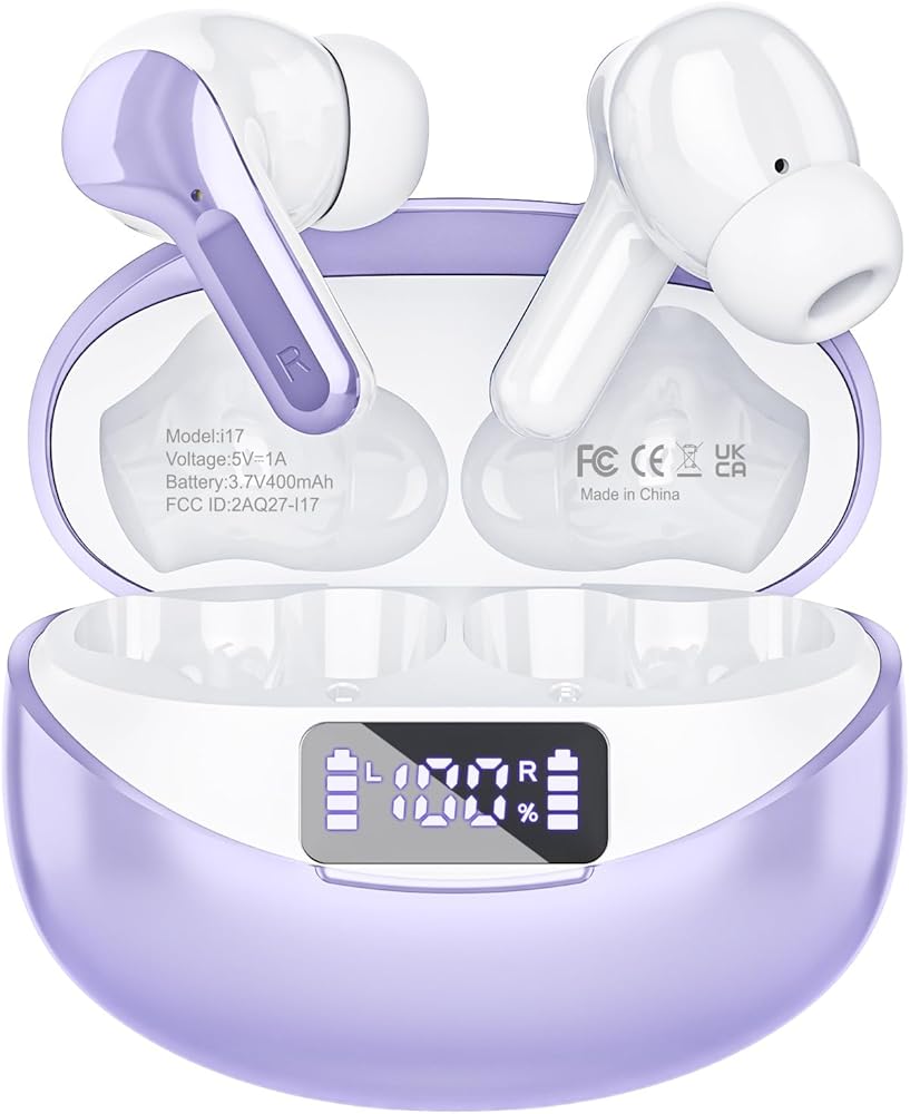 Fhumsh Wireless Earbuds, 50H Playback LED Digital Display Ear Buds with Bluetooth 5.3 Headset, IPX7 Waterproof Earphones for Running/Workout Purple