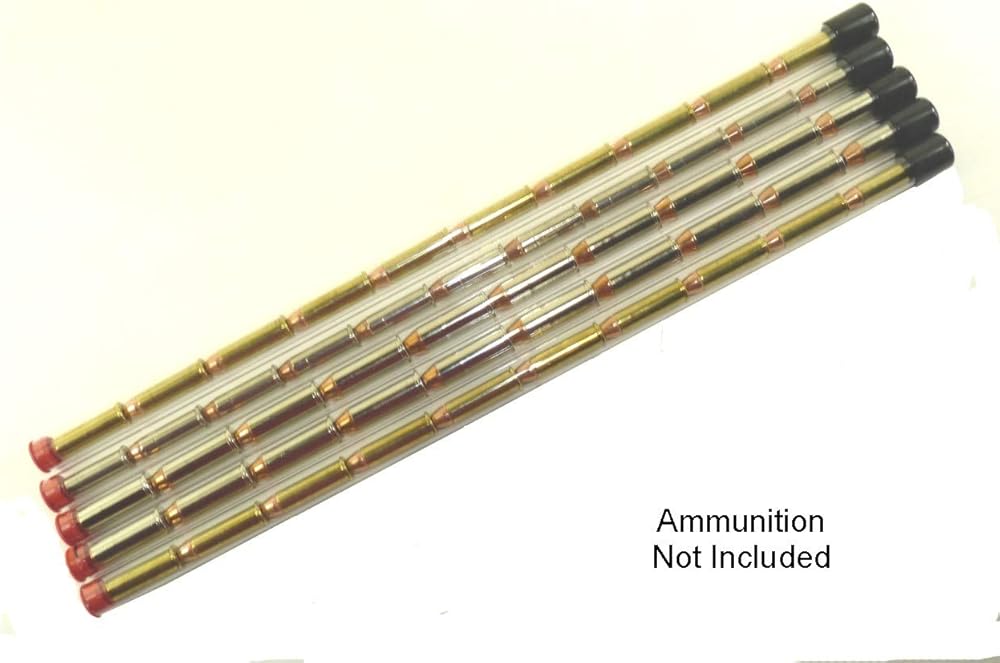 The ORIGINAL Speedloaders for Henry Big Boy Rifles! MADE in USA! Pack of 5 Quick-Fill Speed Tubes for your Henry Big Boy Rifle - Holds 10 rounds of .357 Mag, .44 Mag, .45 Long Colt, or .41 Mag each (also accommodates 38 Spcl & .44 Spcl of course). Simple, but very effective. Simply remove the cap and quickly reload your tube-fed rifle. These clear plastic tubes with vinyl caps are designed to fit the most common calibers of ammo for Henry Big Boy Rifles (may work for .327 Fed, though our 22 Mag tubes might be a better fit). Load rounds in your speed tube point down for quick fill of the Henry Big Boy's magazine tube from the muzzle end by removing inner magazine tube/plunger, uncapping the speed tube and upending it so the cartridges slide in case-first. Fast and easy! Tubes can easily be cut down for carbine models with 7 round capacity. Cap colors may vary. Warning: Of course, these can also be used with the New Henry Original rifles in .45 Colt and 44-40, though we advise caution when releasing the magazine tube follower. That's good policy whenever reloading Henry Originals, but it's particularly advisable when using our speedloaders since their 10 rounds are a few short of the Henry Original's capacity, therefore leaving some empty space in the magazine tube and allowing for a more forceful impact of the follower on the rounds if allowed to slam down in an uncontrolled release. Note that this is not an issue with the Big Boy rifle's inner magazine tube's plunger, though as always safety dictates caution whenever handling live rounds.