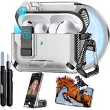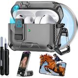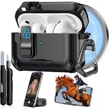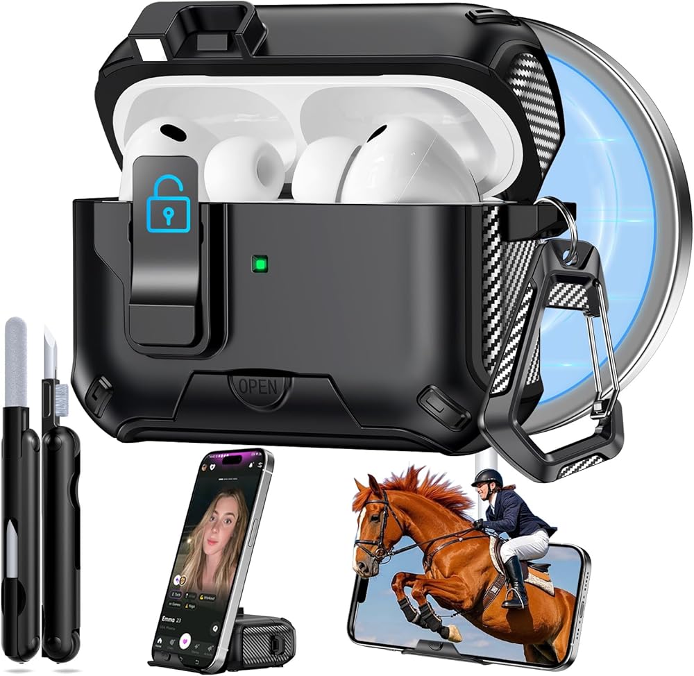 جراب AirPods Pro 3 2025، قفل أمان وتصميم حامل هاتف مخفي لهاتف Apple AirPods Pro الجيل الثالث مع سلسلة مفاتيح نظيفة للرجال والنساء، متوافق مع MagSafe، أسود