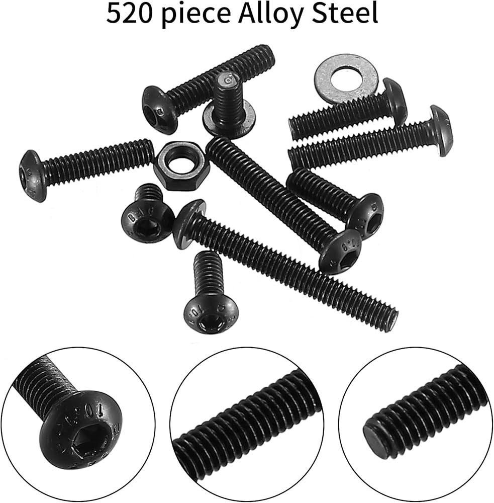 💕 The black bolts and nuts set is made of 10.9 grade high-quality alloy steel, which has good corrosion resistance, high temperature resistance and wear resistance, and is durable.