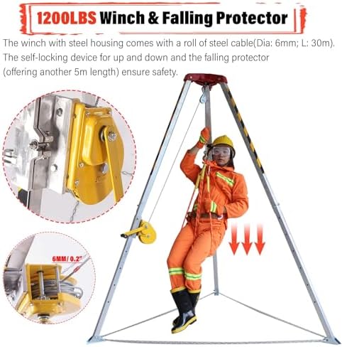 5: Sicurezza in caso di soccorso con verricello e imbracatura anticaduta ---- Crediamo che la sicurezza sia una priorità assoluta nelle operazioni di soccorso, concentrandosi sia sul soccorritore che sulla vittima. Questo treppiede di soccorso, dotato di verricello autobloccante, previene i crolli accidentali, migliorando così la sicurezza operativa. Inoltre, l'accessorio include un dispositivo anticaduta da 5 metri e un'imbracatura progettata per arrestare immediatamente una caduta im