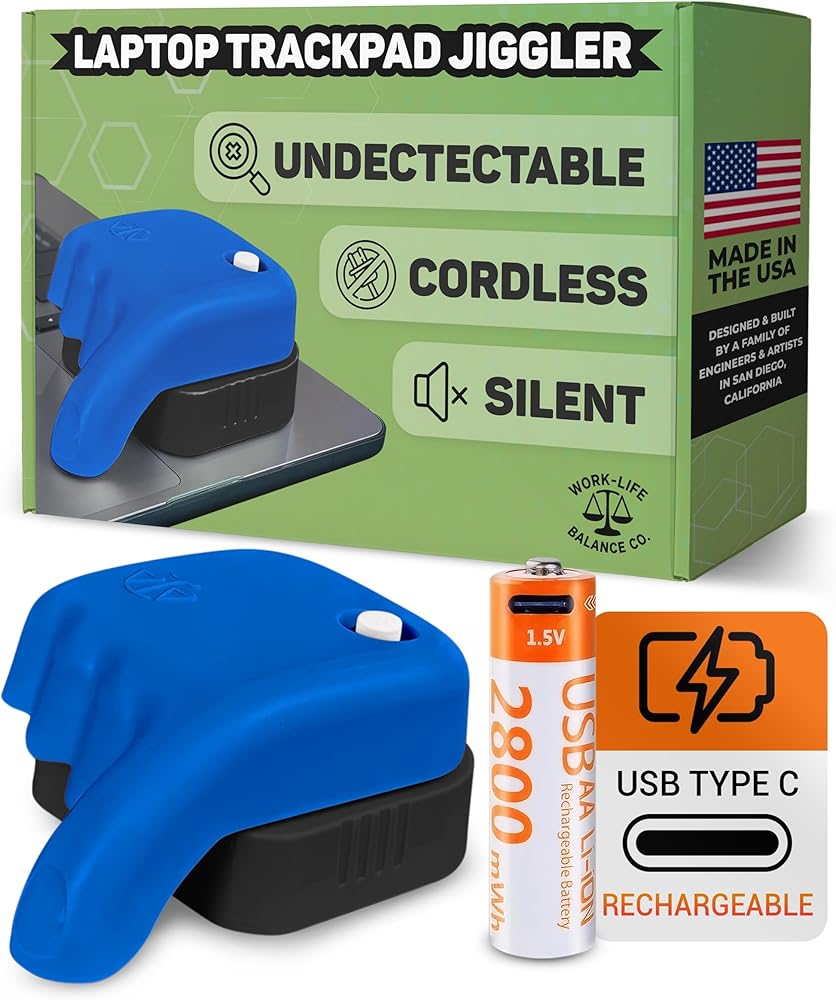 لوحة التتبع القابلة لإعادة الشحن والتوازن بين العمل والحياة - محرك ماوس ميكانيكي غير قابل للاكتشاف للكمبيوتر المحمول، هزاز تلقائي للحفاظ على نشاط الشاشة، جهاز لاسلكي، لوحة تعقب للعمل عن بعد - تقنية أساسية - أزرق