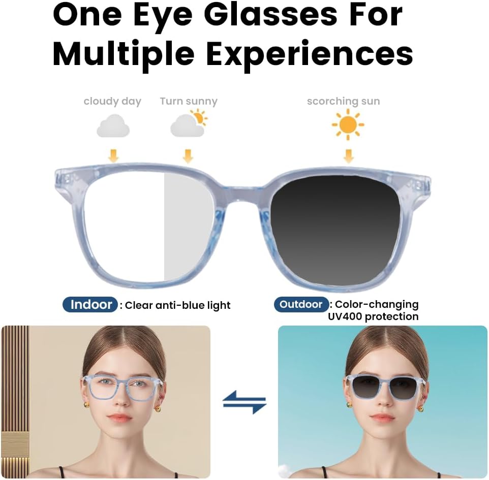 【تصميم جديد】 نظارات ذكية مع عدسات فوتوكروميك مستقطبة UV400، يمكن تغيير لون عدسات النظارات الصوتية من الضوء الشفاف والأزرق المقاوم في الداخل إلى الظلام والأشعة فوق البنفسجية في الهواء الطلق، مما يوفر لونًا فائقًا ووضوحًا وتباينًا مع تصفية الوهج الضار وأضرار أشعة الشمس بشكل فعال لحماية عينيك في أي وقت وفي أي مكان!