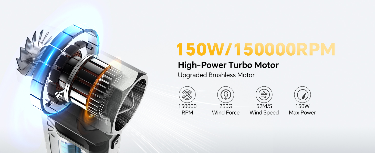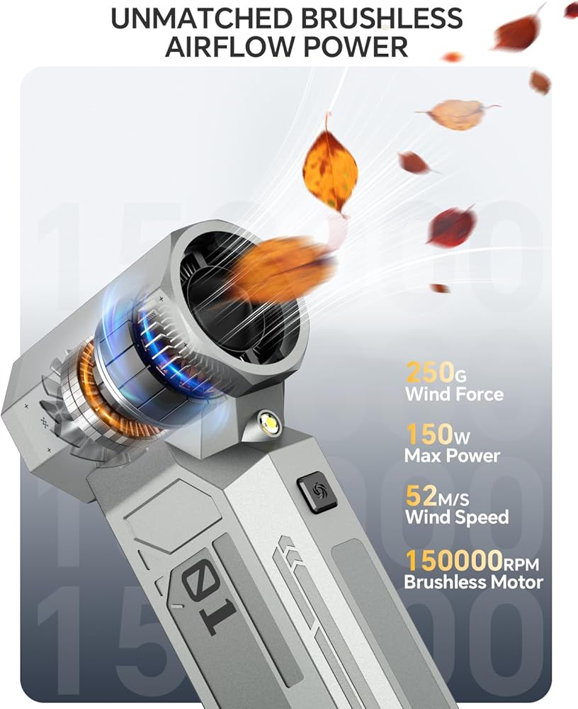 منفضة هواء مضغوط، منفضة هواء كهربائية 150000 دورة في الدقيقة مع شاشة LED ومحرك بدون فرش، منفاخ هواء 4 تروس قابل لإعادة الشحن مع ضوء LED، مروحة توربو لاسلكية للكمبيوتر ولوحة المفاتيح والسيارة والمنزل والخارج