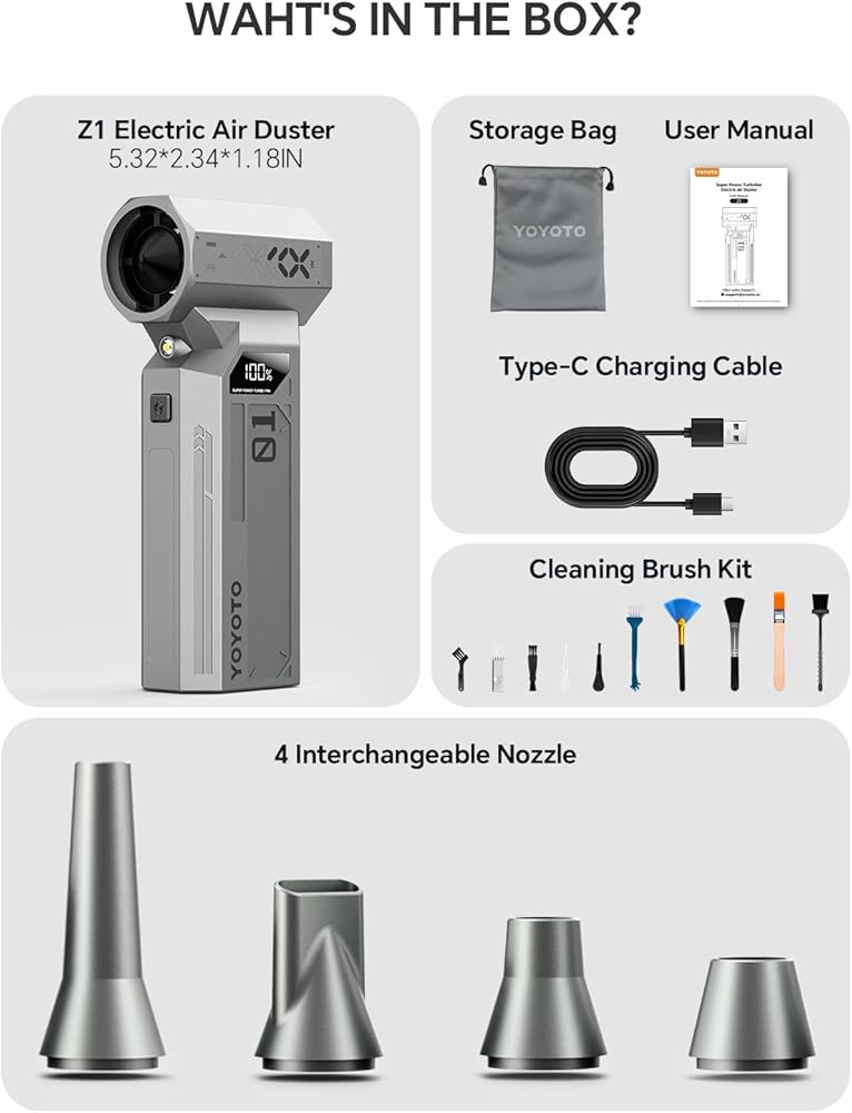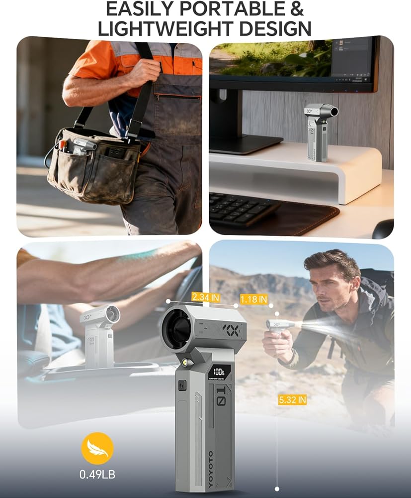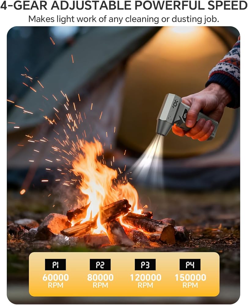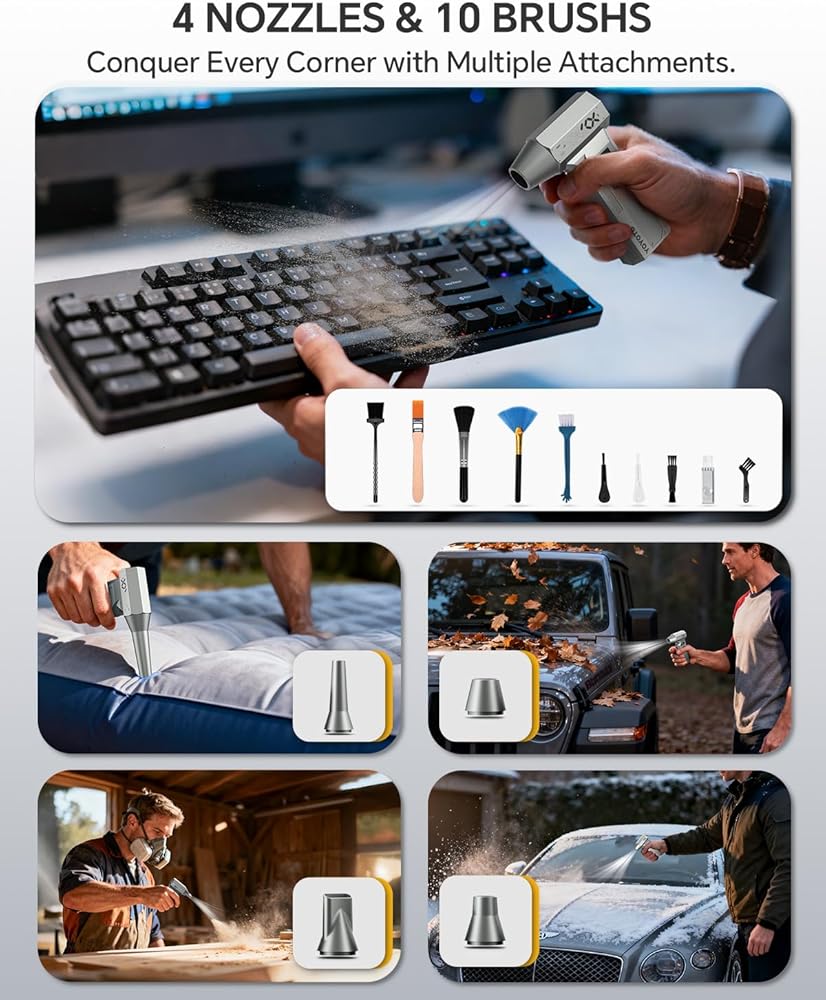 【تحكم احترافي، 4 إعدادات】 4 سرعات قابلة للتعديل تُغير قواعد اللعبة، مما يسمح لك بتخصيص تدفق الهواء حسب المهمة التي تقوم بها، بدءًا من التنظيف اللطيف للإلكترونيات الحساسة وحتى التفجيرات القوية للأسطح المنزلية. يوفر الإعداد الأعلى تيارًا مركزًا وقويًا لإزالة الحطام بكفاءة من لوحة المفاتيح وأجهزة الكمبيوتر والأجزاء الداخلية للكمبيوتر وفتحات السيارة، بينما توفر الإعدادات المنخفضة الدقة اللازمة للمكونات الحساسة. هذا هو الشعور بوجود أداة احترافية بين يديك.