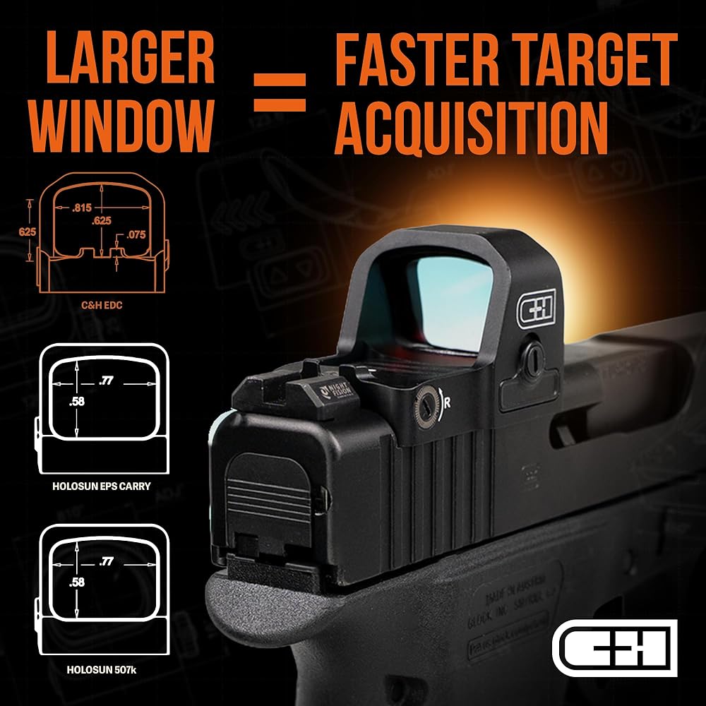 C+H EDC Micro Red Dot Sight لـ Glock 43X Red Dot Sights | 3 MOA مسدس تثبيت مباشر بصريات النقطة الحمراء لـ Glock 43X/48 MOS | ريد دوت اهتز مستيقظا مسدس البصرية