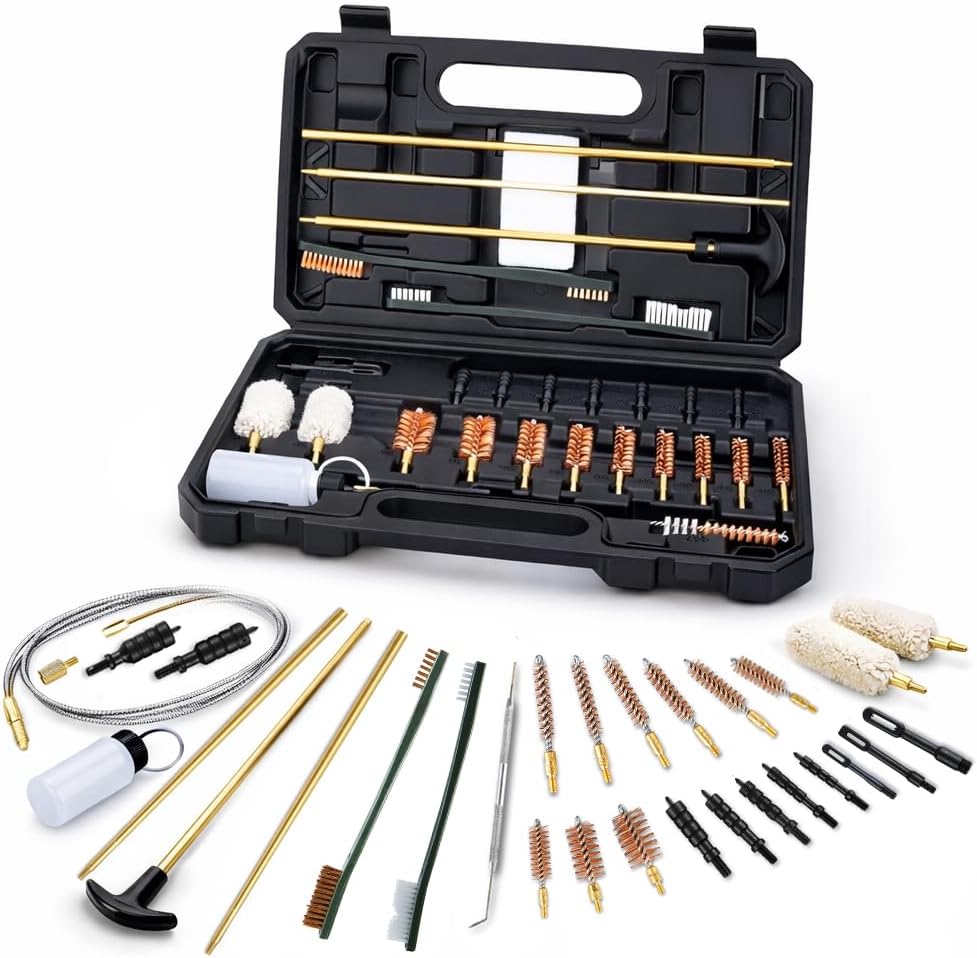 مجموعة أدوات تنظيف الأسلحة الشاملة: نحن نقدم مجموعة أدوات تنظيف أسلحة عالمية مصممة للحفاظ بشكل فعال على معظم الأسلحة النارية، بما في ذلك المسدسات والبنادق والبنادق في حالة تشغيل ممتازة من قبل مالكي الأسلحة المسؤولين.