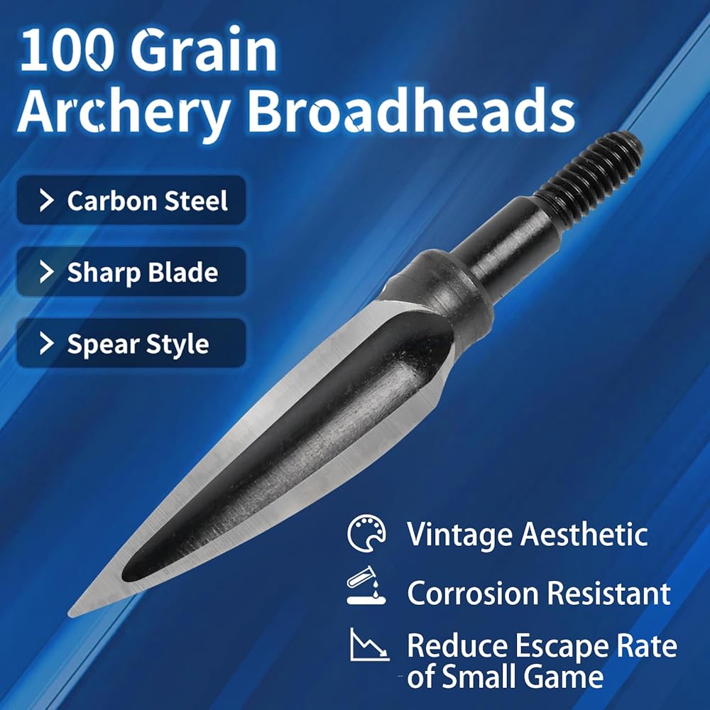 【جماليات عتيقة ووظيفة عملية】تستعيد رؤوس أسهم الرمح الكلاسيكية ذات الجسم غير اللامع جماليات الرماية التقليدية مع تحسين توازن الوزن لتلبية احتياجات التصحيح الفني، مما يساعد الرماة والرماة على إظهار أسلوبهم الفريد في الساحة ومجال الصيد.