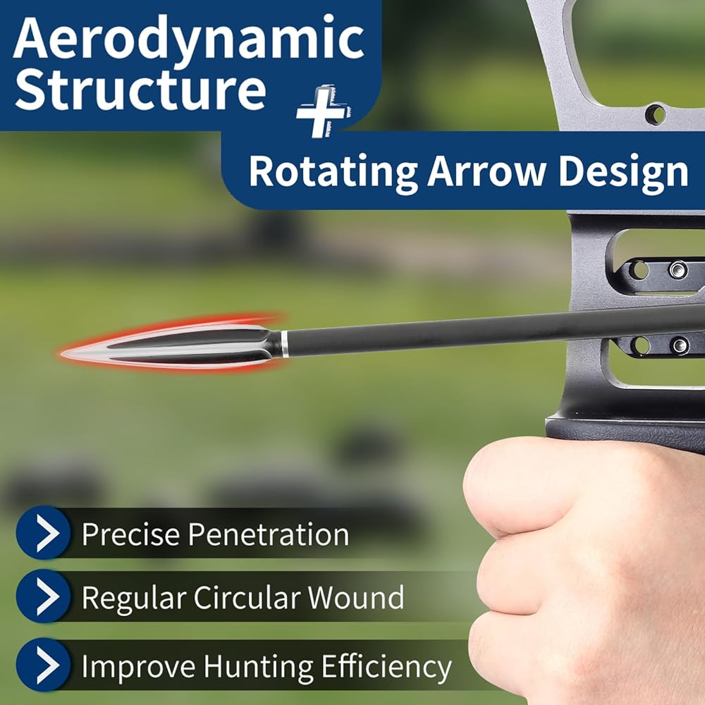 【نصائح سهم الصيد لاختراق دقيق】يعمل الهيكل الديناميكي الهوائي + تصميم السهم الدوار على تحسين ثبات الطيران واختراق الهدف، مما يشكل على الفور جرحًا دائريًا منتظمًا عند الضرب، مما يقلل بشكل كبير من معدل الهروب من اللعبة الصغيرة، مع الأخذ في الاعتبار دقة الرماية وكفاءة الصيد.