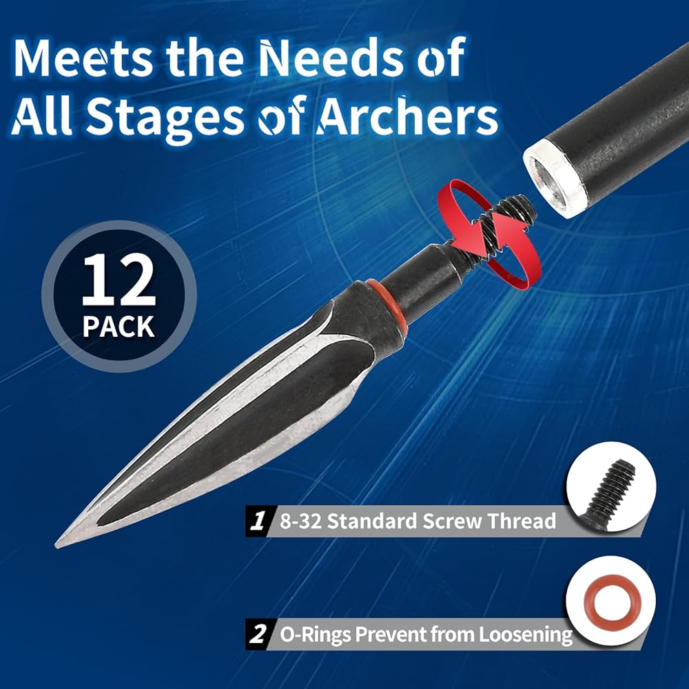 【مادة احترافية ومزيج فعال من حيث التكلفة】أطراف السهم المصنوعة من الفولاذ الكربوني حادة ومتينة ومقاومة للتآكل. 12 عبوة تلبي احتياجات التدريب على الرماية والصيد على المدى الطويل. يمكن اختيار المواصفات المزدوجة 100 جرام و125 جرام لتغطية أطوال السحب وسرعات الأسهم المختلفة، وهي عملية شراء واحدة للاستمتاع بتجربة الرماية فعالة من حيث التكلفة.