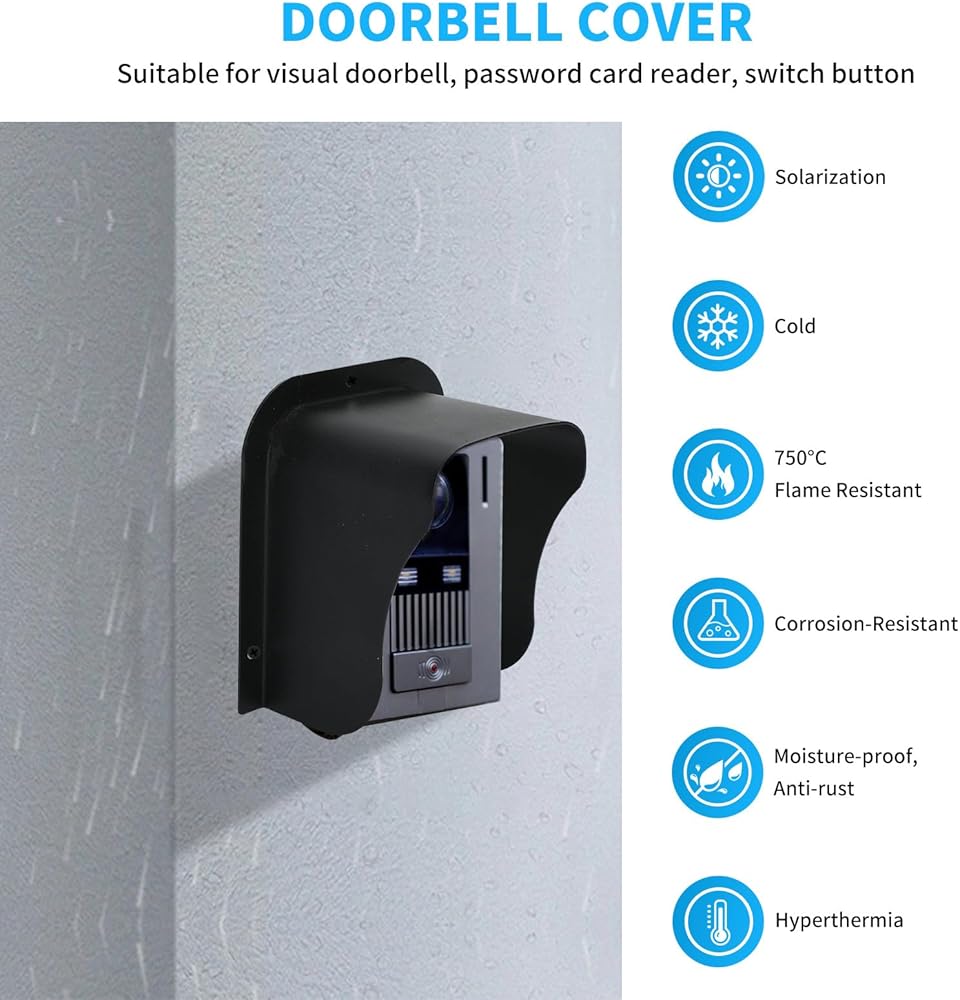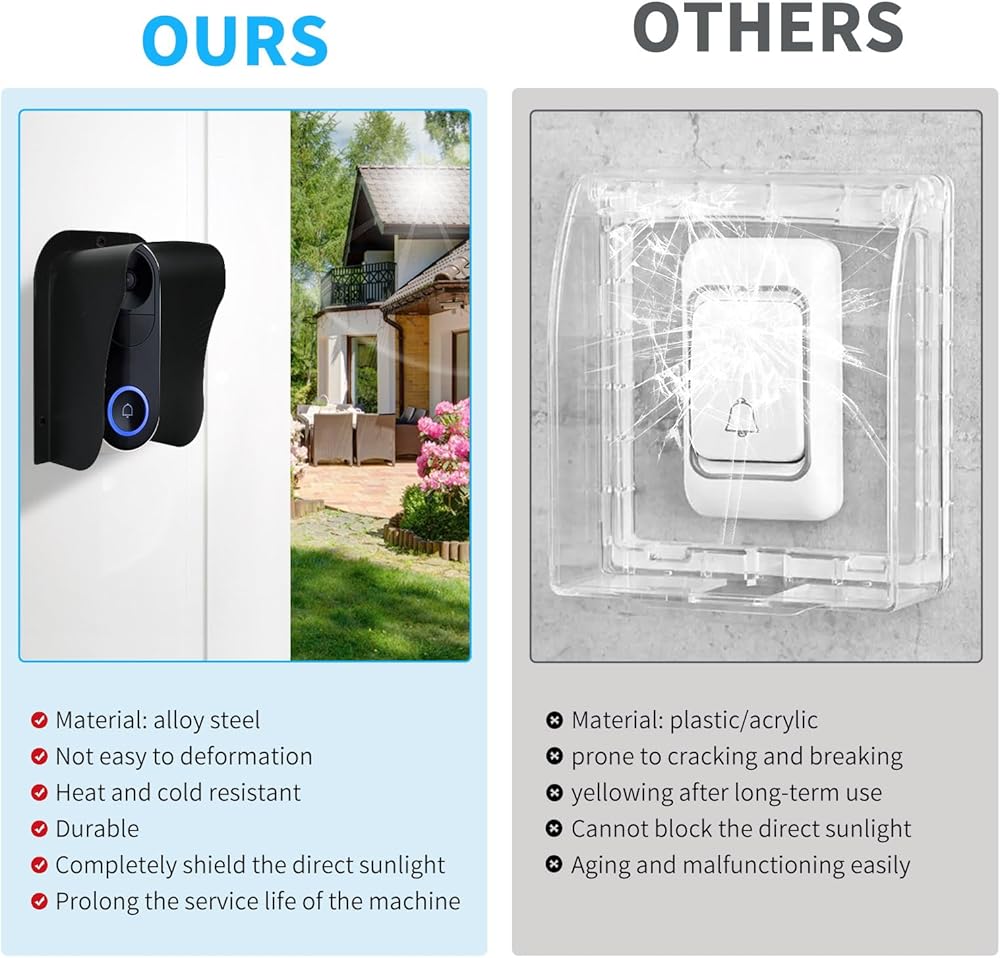 • 【معادن عالية الجودة】: هل تتطلع إلى التشغيل طويل الأمد لبطارية جرس الباب الخاصة بك تحت درجة الحرارة الزائدة؟ هل تبحث عن درع غطاء جرس الباب الذي لا يكون عرضة للاعوجاج أو البهتان أو التشقق في جميع الأحوال الجوية؟ الغطاء الواقي لجرس الباب المقاوم للطقس، مصنوع من الفولاذ المتين الملفوف على البارد، يمكن أن يقلل من الحرارة التي تصل إلى جرس الباب الخاص بك، ويمنع جرس الباب الخاص بك من المشكلات المذكورة أعلاه، ربما يكون خيارك الأفضل.