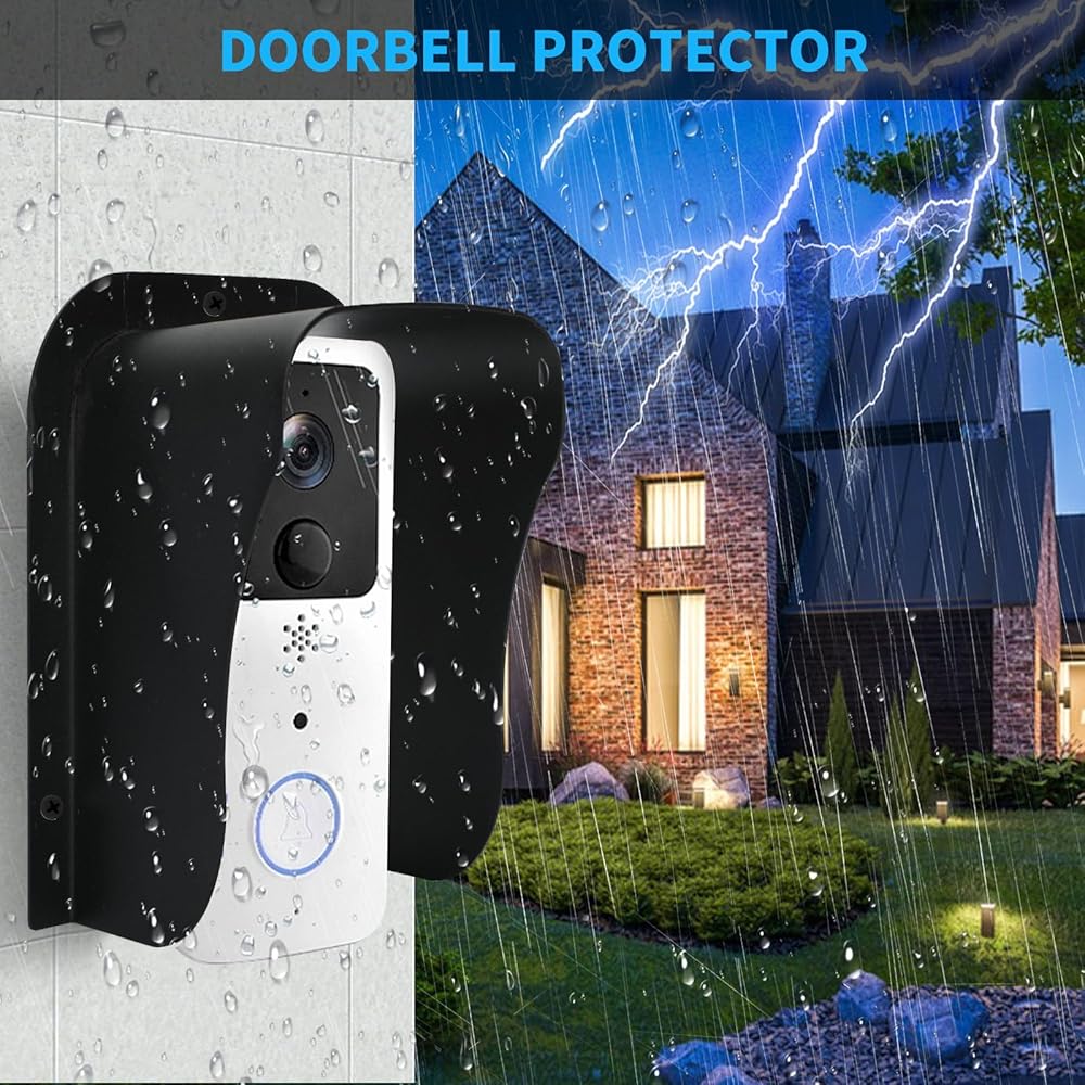 • 【تصميم فريد】: يعرض غطاء المطر لجرس الباب الدائري بساطة أنيقة مع سطحه الأسود غير اللامع وشكل "U"، وهو كبير بما يكفي لتغطية كاميرا جرس الباب اللاسلكية أو كاميرا الفيديو بالغرفة.