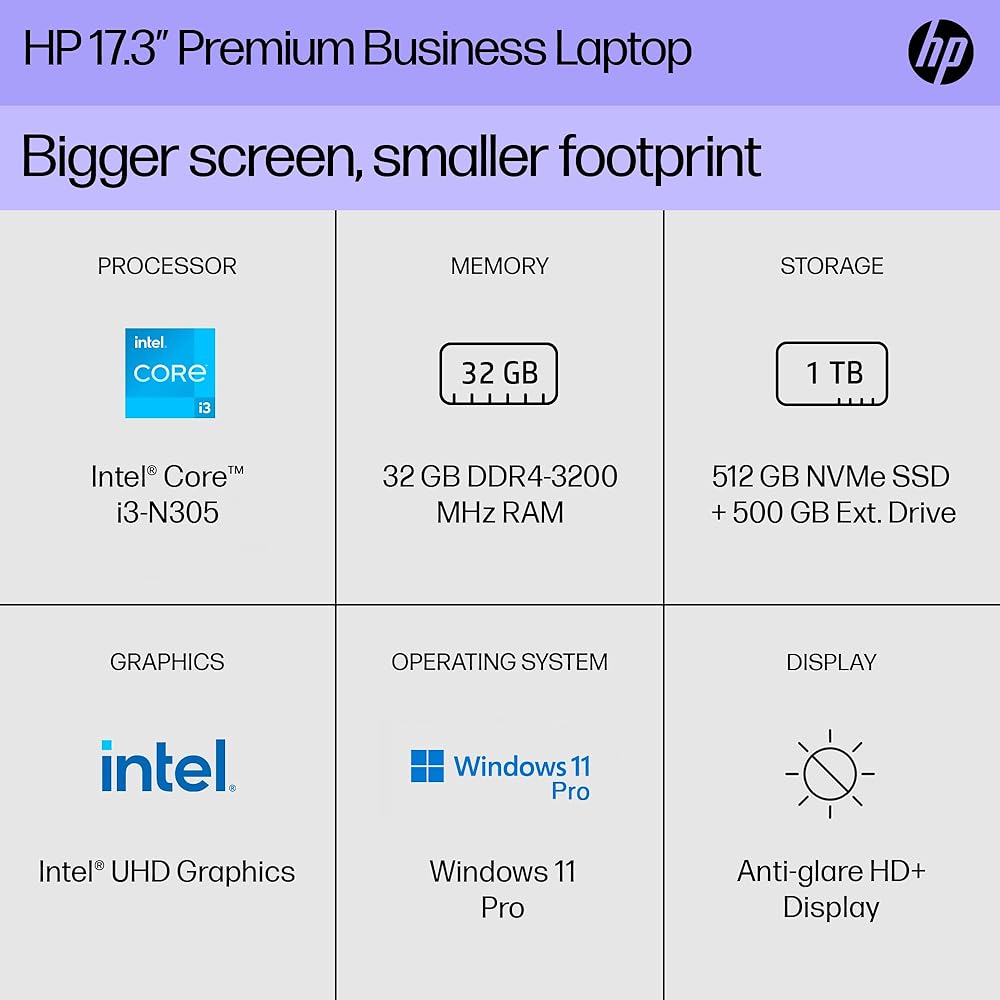 2025 HP 17 Flagship Laptop, See more and enjoy flicker-free images on a HD+ screen with a narrow bezel, and get comfy while you type with a new lift-hinge that elevates the keyboard. With a thin and light design, take this PC anywhere. Multitasking feels easy and fast with the performance of an Intel processor, powerful graphics, and speedy Wi-Fi technology. Store more of what you love with a lot of storage.