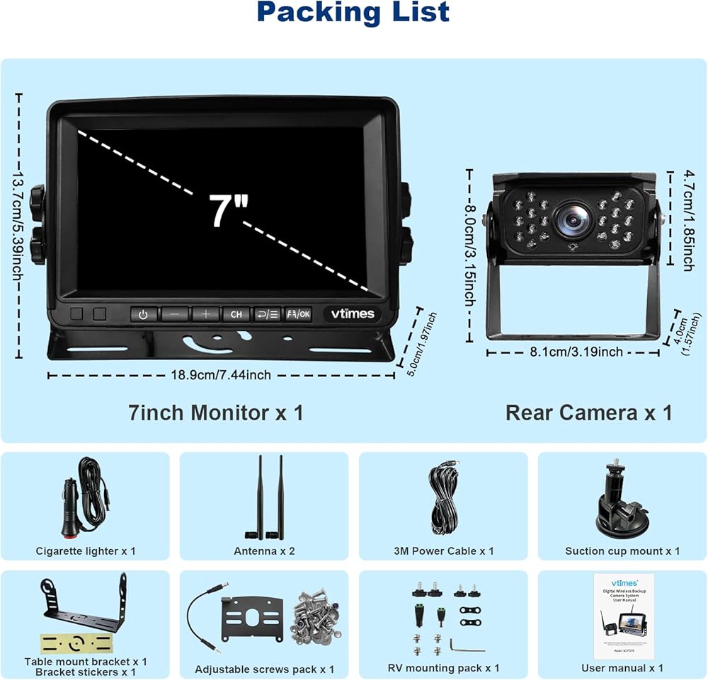 【هدية عملية لعيد الأب من أجل مغامرات RV أكثر أمانًا】امنح الأب هدية راحة البال! هذه الكاميرا الاحتياطية اللاسلكية الثلاثة للمركبات الترفيهية تزيل البقع العمياء وتعزز سلامة القيادة، خاصة للسفر في المركبات الترفيهية. يتضمن تعليمات التثبيت التفصيلية والفيديو. استمتع بضمان لمدة عام ودعم فني مدى الحياة. اتصل بفريق ما بعد البيع لدينا في أي وقت للحصول على المساعدة. مثالية لعيد الأب أو لعشاق المركبات الترفيهية. إضافة عملية لأي قائمة هدايا!