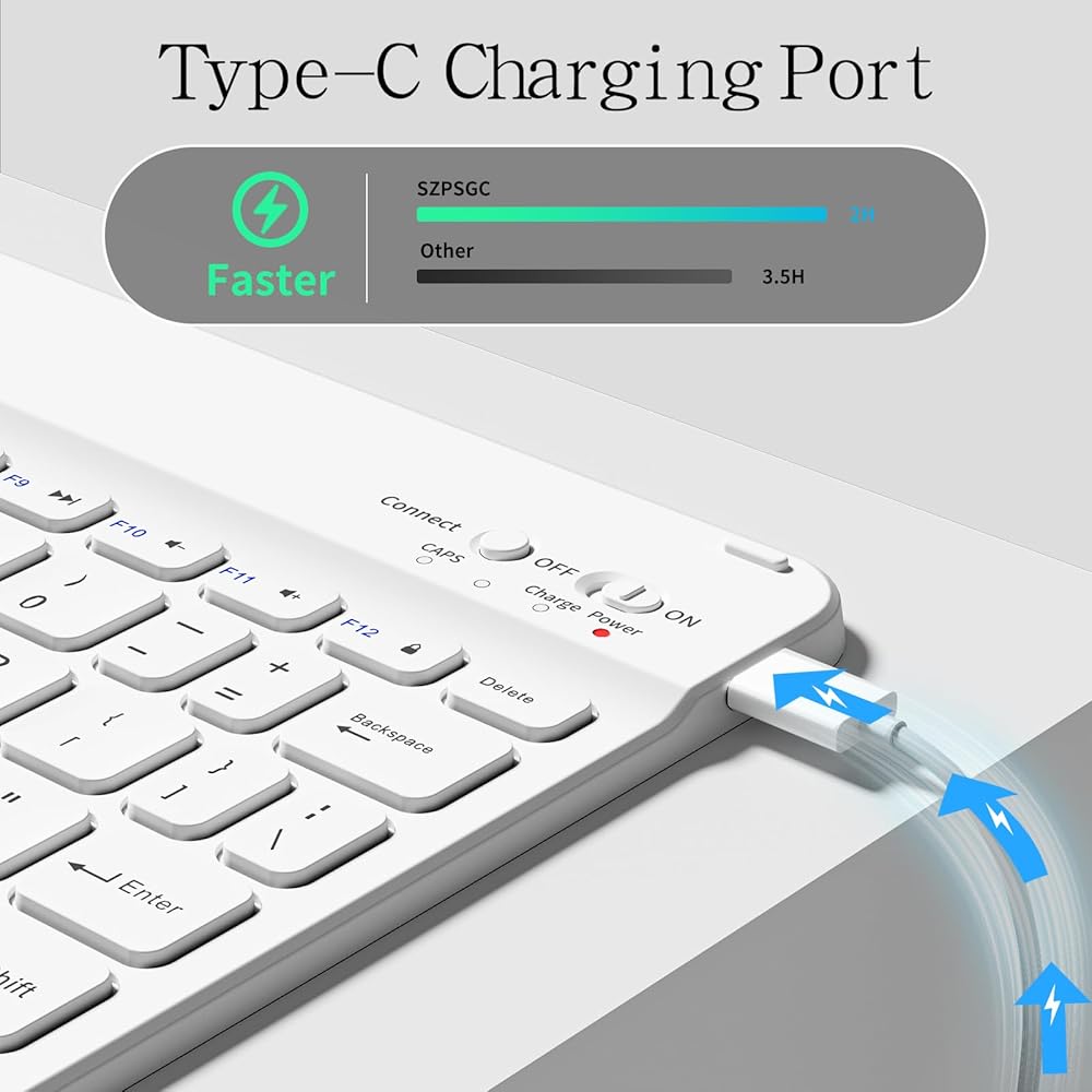 【مصدر طاقة طويل الأمد】هذا مناسب لجهاز iPad 9th/8th/7th مقاس 10.2 بوصة مع لوحة مفاتيح تعمل ببطارية موفرة للطاقة، ويدعم ما يصل إلى 180 ساعة من الاستخدام بشحنة واحدة. يتميز بشحن سريع من النوع C، حيث يتم شحنه بالكامل خلال ساعتين فقط، مما يزيل متاعب الشحن المتكرر