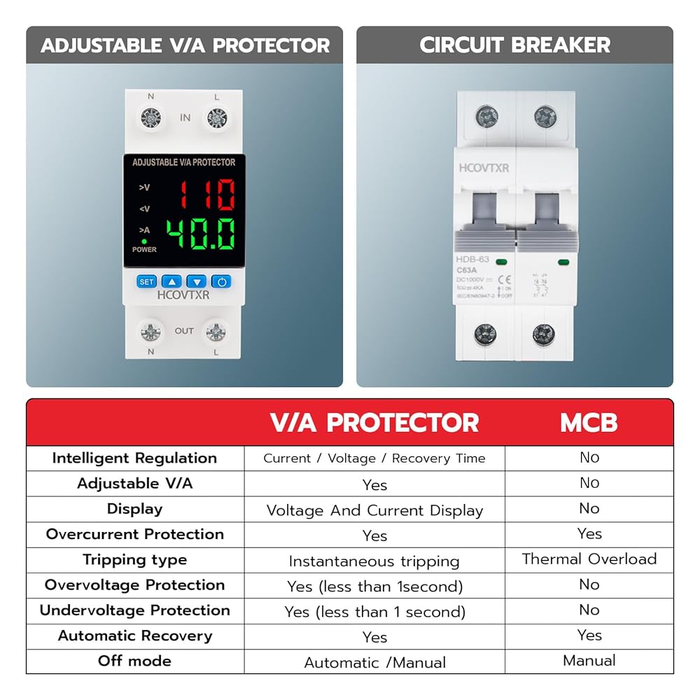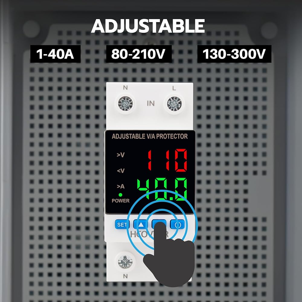 واقي الجهد الكهربائي للمنزل بالكامل: يحمي من التيار الزائد والجهد الزائد والجهد المنخفض. يقوم جهاز التتابع بفصل الطاقة تلقائيًا عند تجاوز الحدود وإعادة الضبط التلقائي عندما تعود القيم إلى وضعها الطبيعي