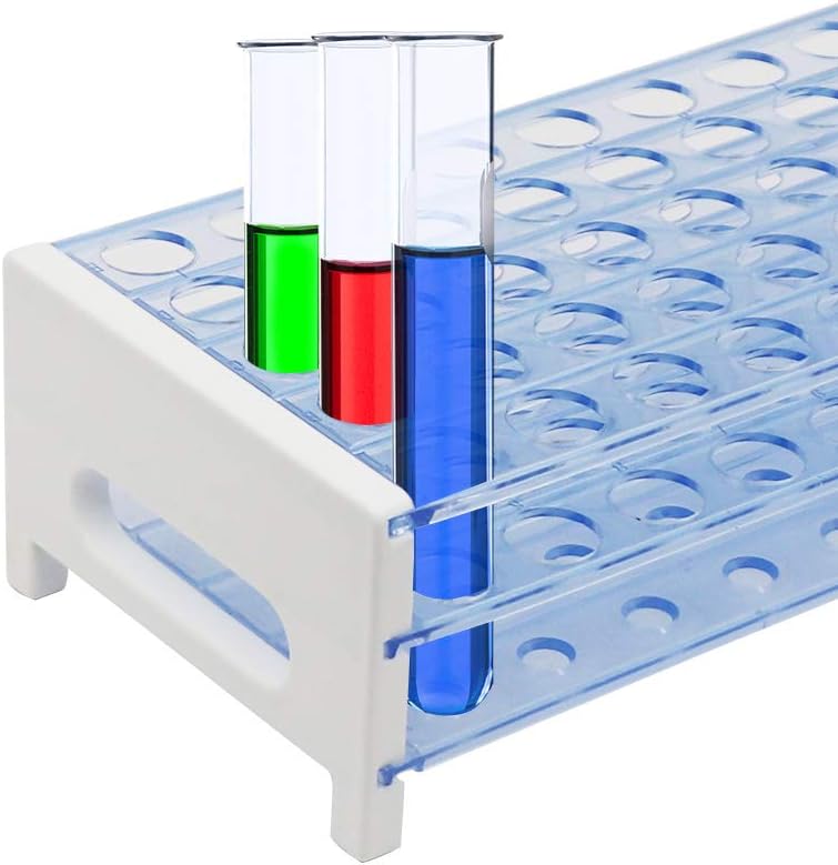 EASY TO USE: Lab test tubes holder is sturdy and lightweight, plastic test tube rack can provide clear view of the tube contents and convenient insertion and removal of tubes