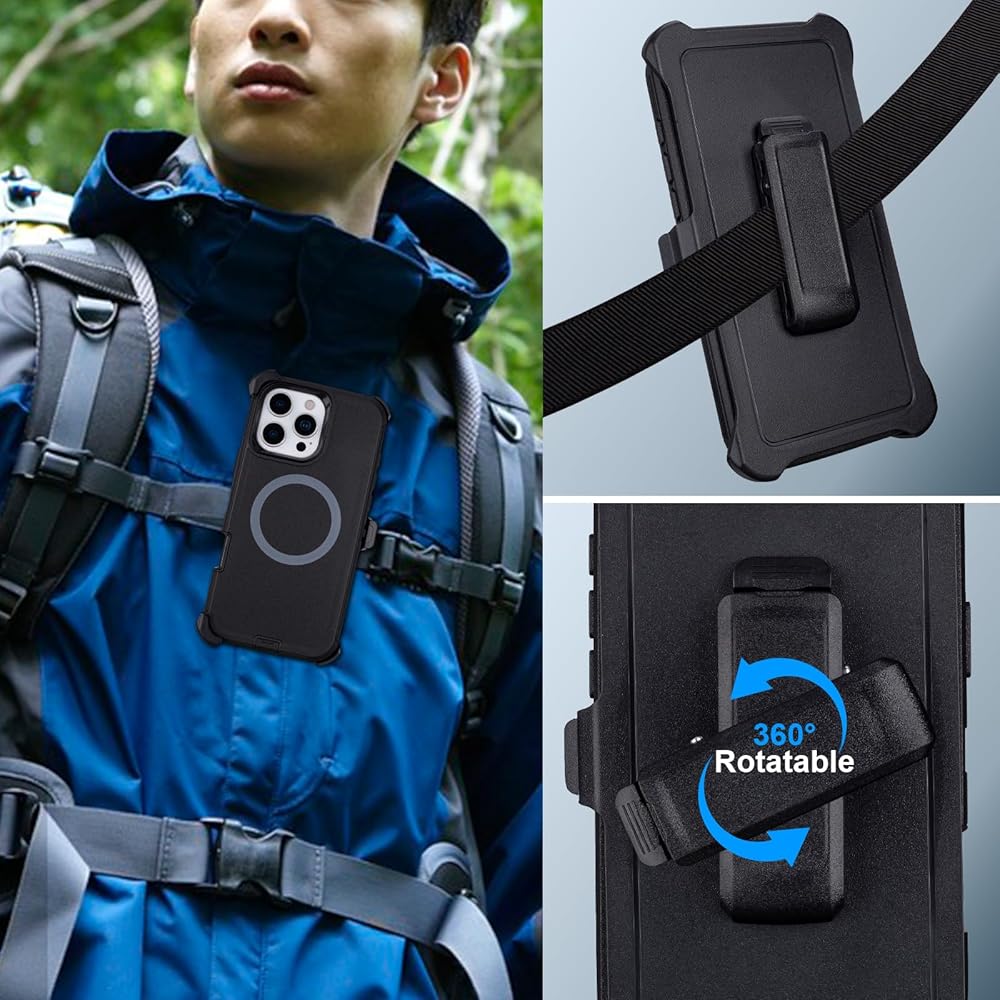 تصميم متعدد الوظائف: قم بتوصيل مشبك الحافظة القابل للفصل بحزامك أو حقيبتك للوصول الآمن والسهل إلى الجهاز. تتحول حافظة iPhone 16 Pro Max المزودة بمشبك حزام أيضًا إلى مسند لسهولة مشاهدة الفيديو دون استخدام اليدين. مثالية للأنشطة الداخلية والخارجية