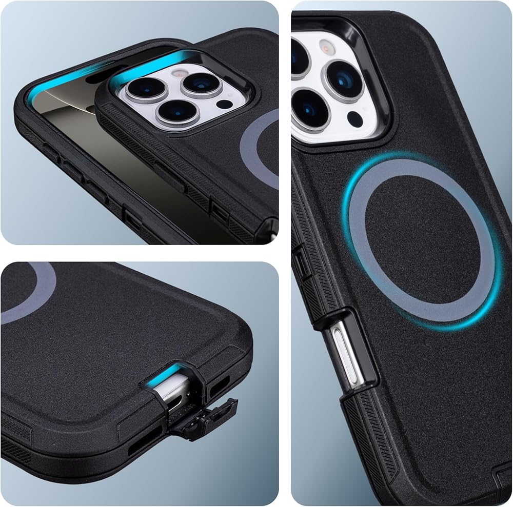 دفاع متعدد الطبقات: تحتوي الحافظة المتينة لهاتف iPhone 16 Pro Max على شرائط قطنية مضادة للانزلاق على كلا الجانبين لمزيد من القبضة تمنع الهاتف من الانزلاق من يديك. توفر حواف الشاشة والكاميرا المرتفعة حماية إضافية لشاشة هاتفك والكاميرا